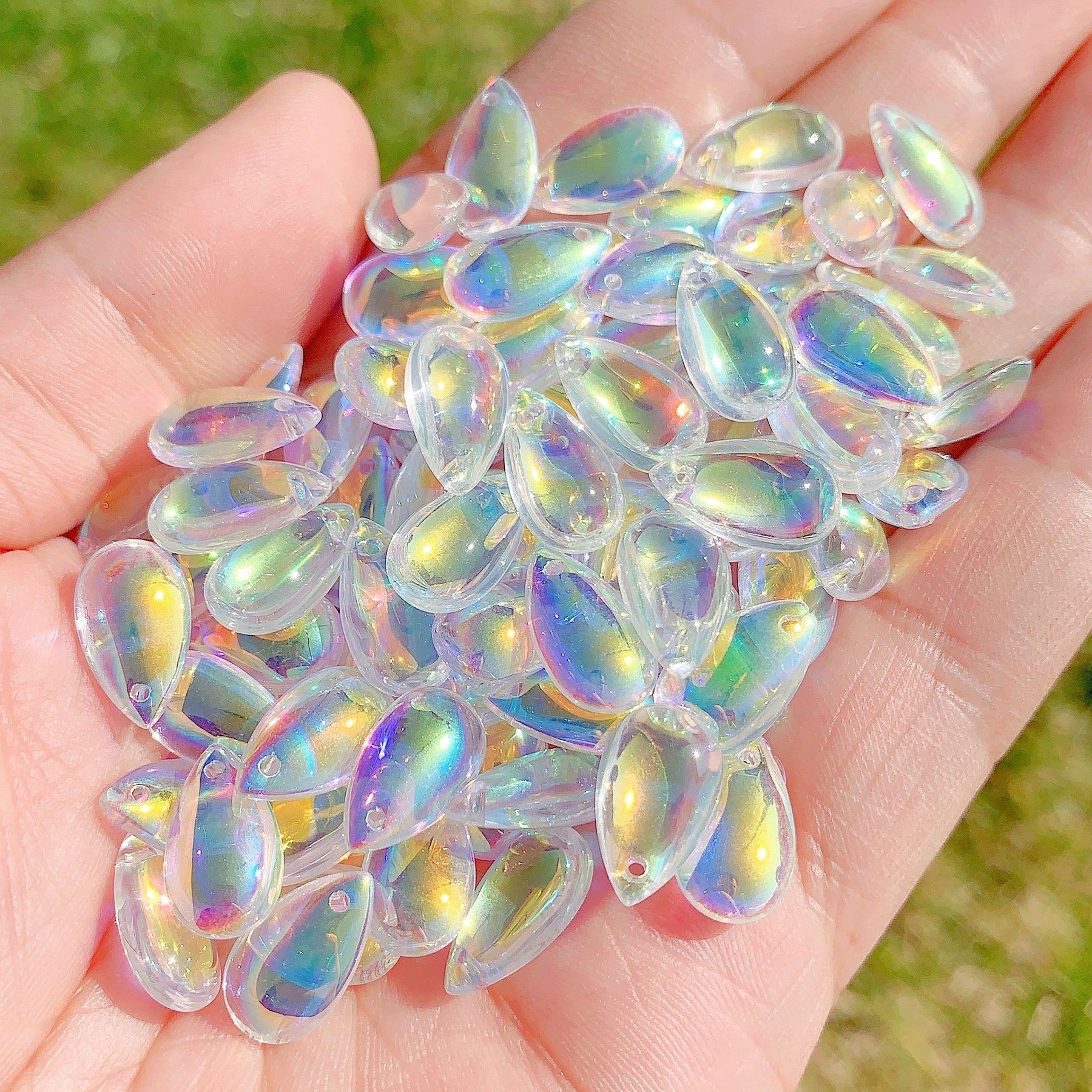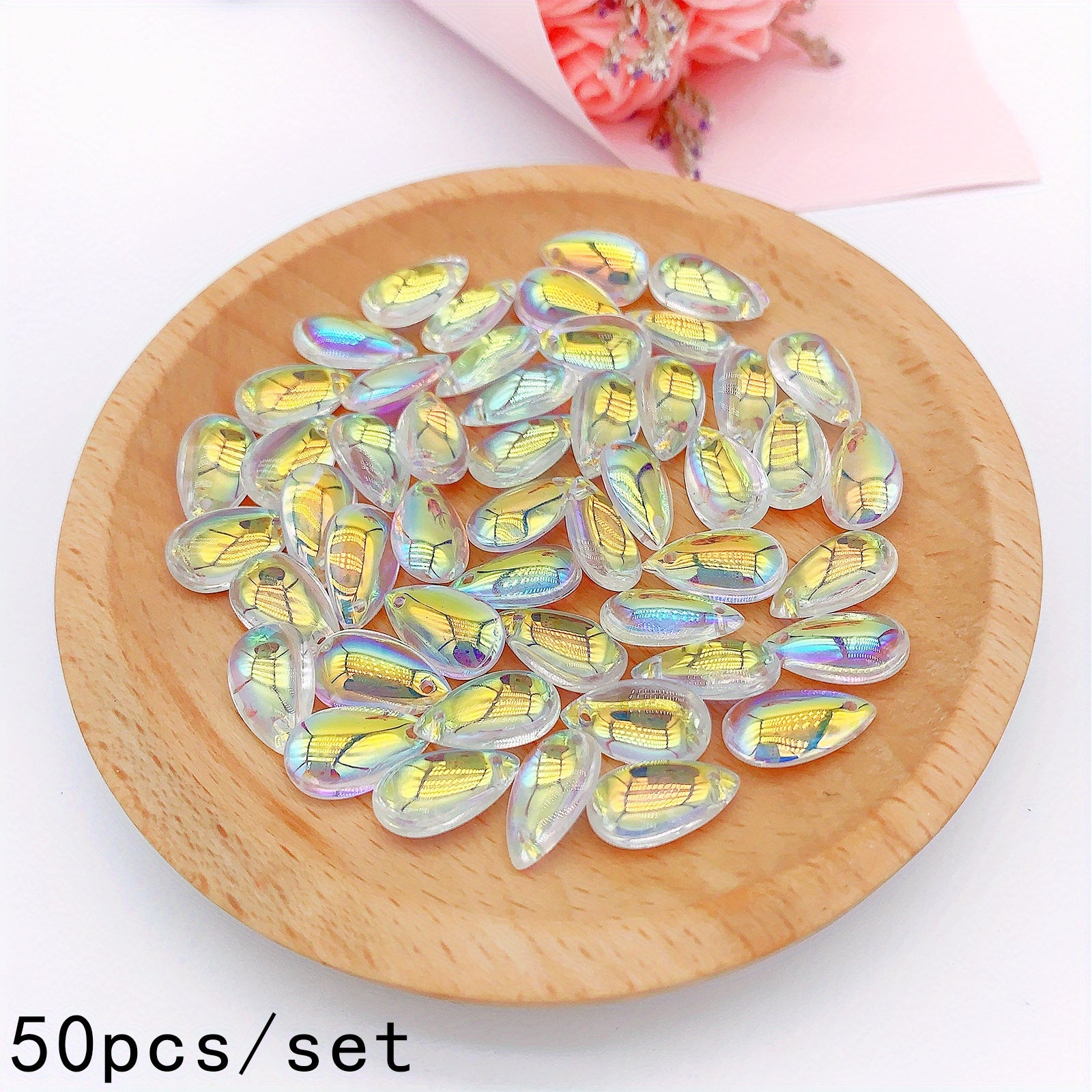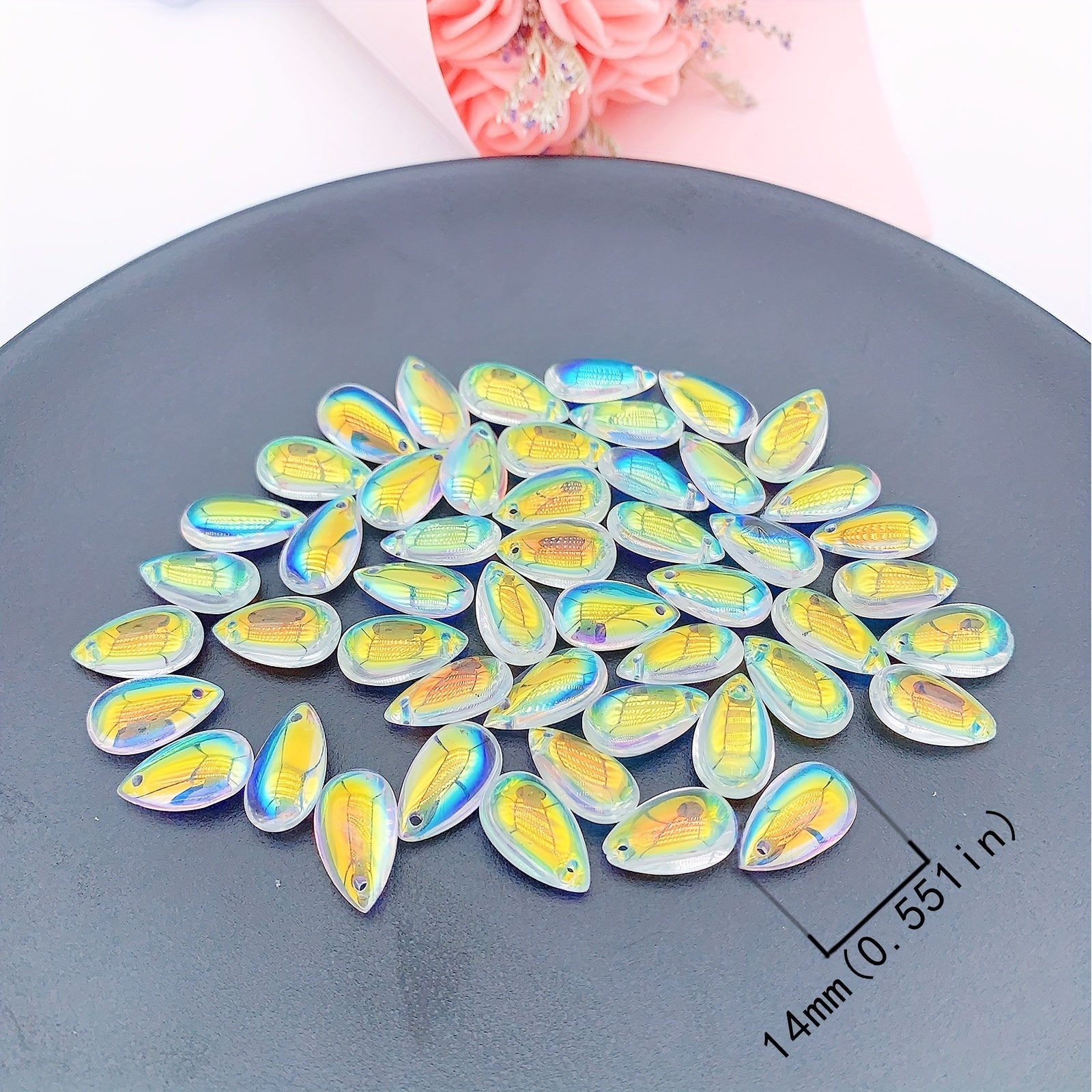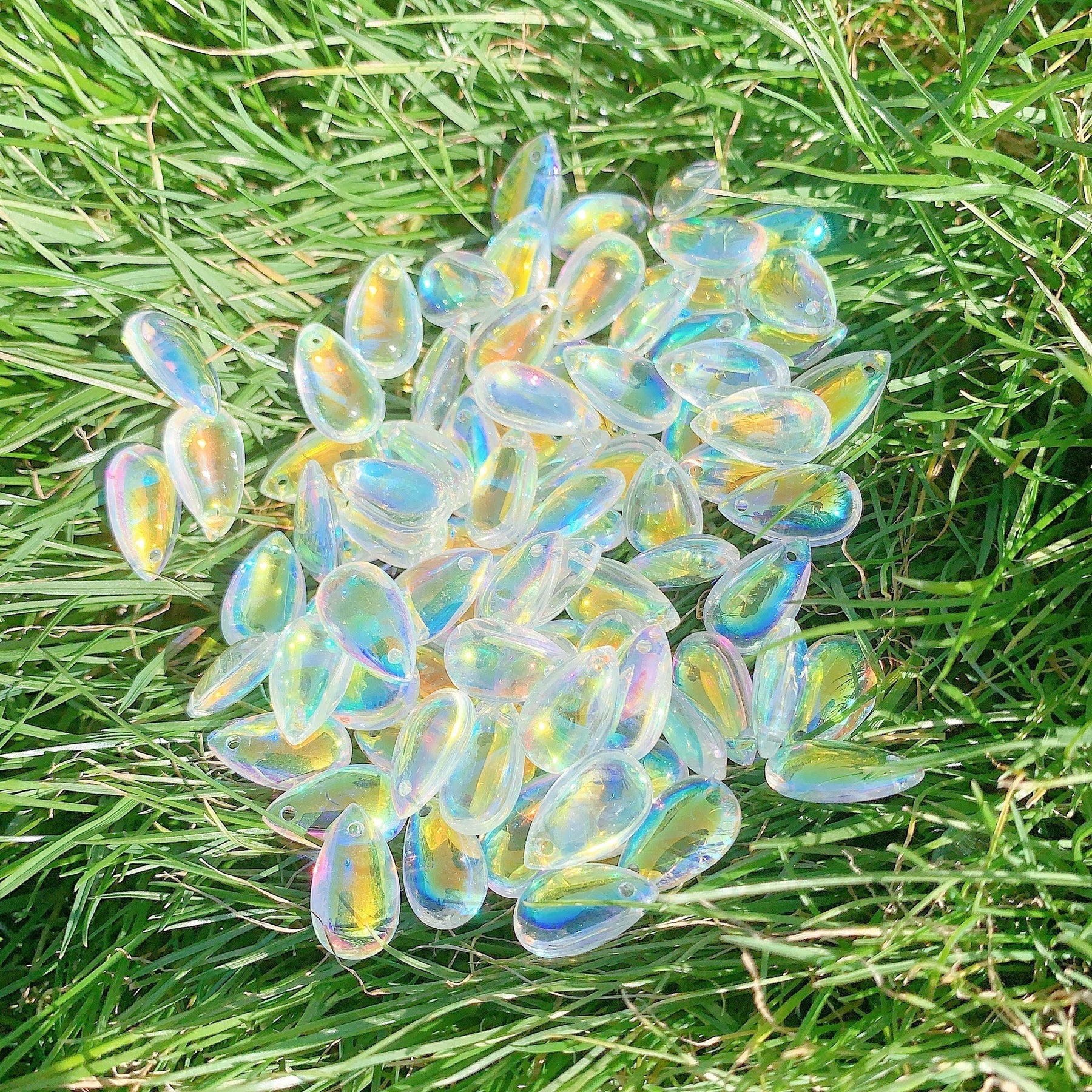 Enhance your crafting projects with this set of 50 water drop crystal beads. These seed-shaped glass beads have a plated AB finish, perfect for making bracelets, earrings, pendants, and other accessories.