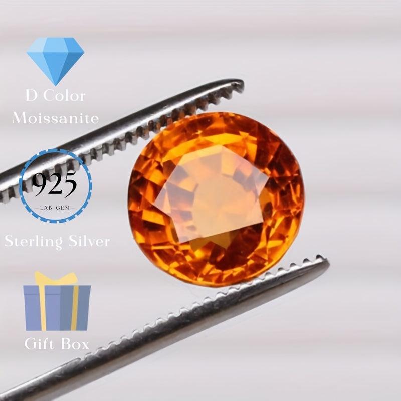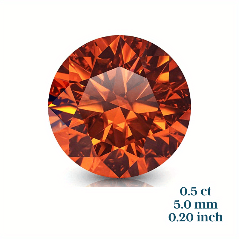 This 5ct round brilliant cut moissanite stone in vibrant orange shade is perfect for creating stunning jewelry pieces. Lab-created with excellent cut, it adds brilliance and elegance to any design.