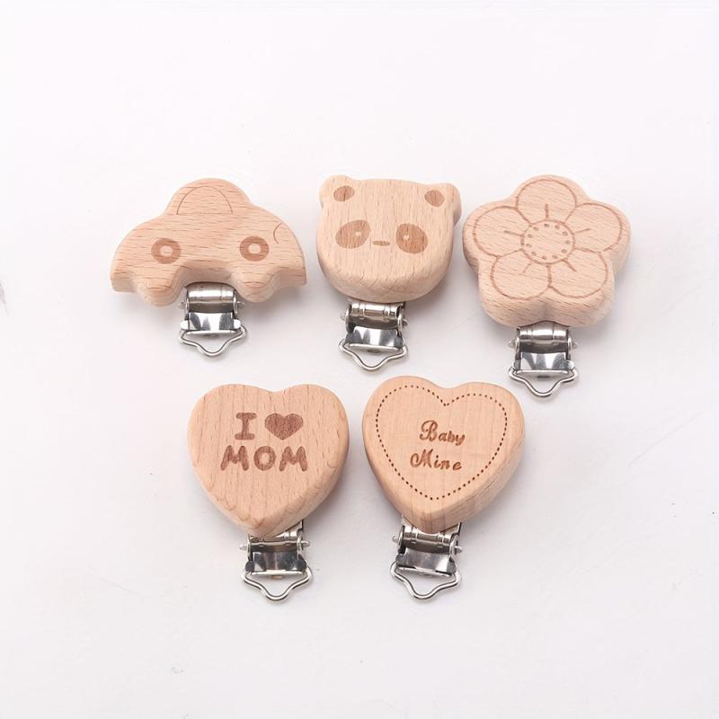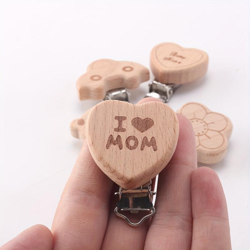 These adorable wooden clips feature cute panda, flower, and heart shapes with 'I MOM' engravings. Ideal for DIY jewelry making, crafts, and accessories. Perfect for adding a fun touch to your projects!