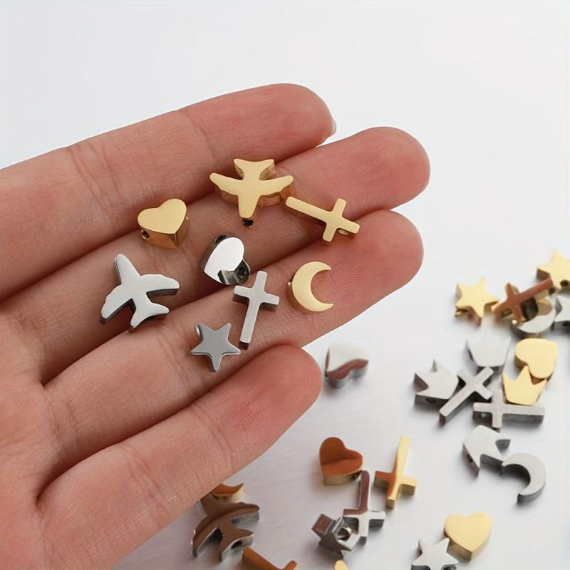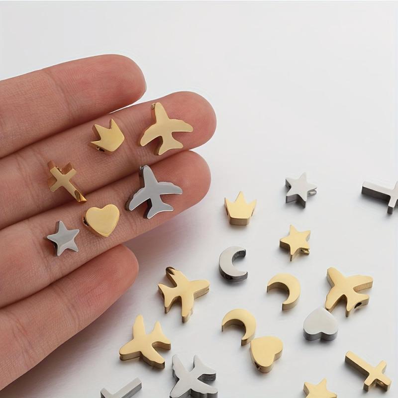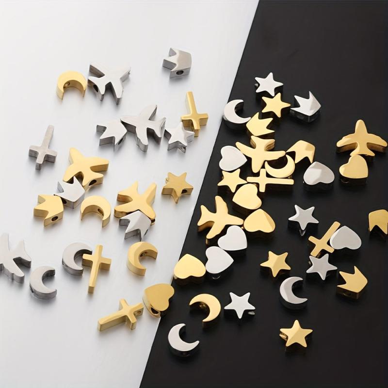 Enhance your jewelry making with this set of 5 polished golden star beads spacers. Perfect for DIY bracelets and necklaces.