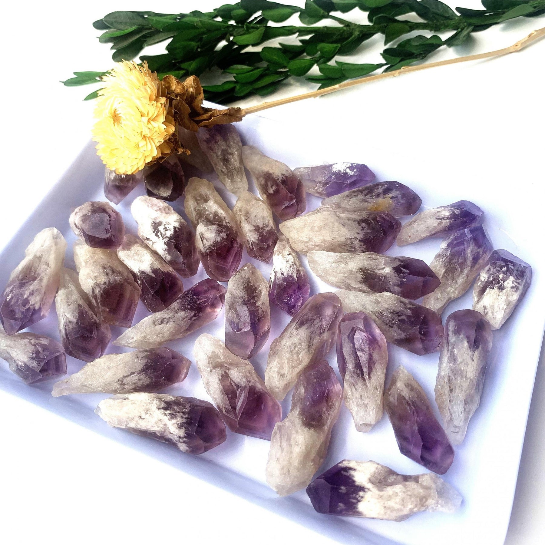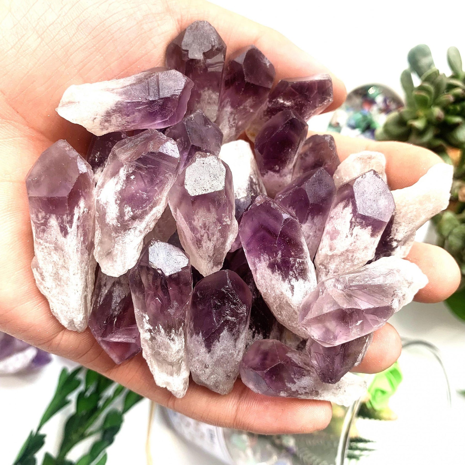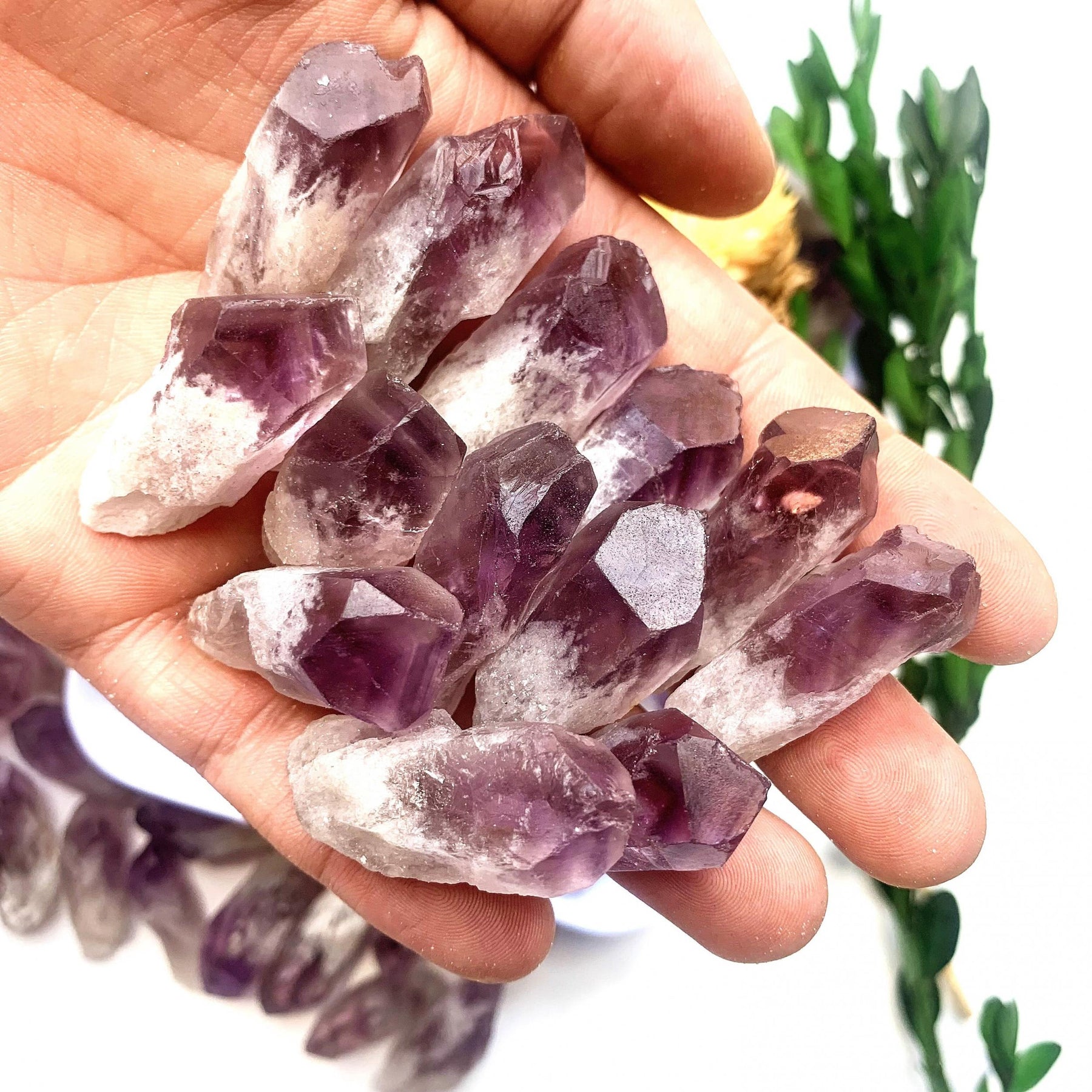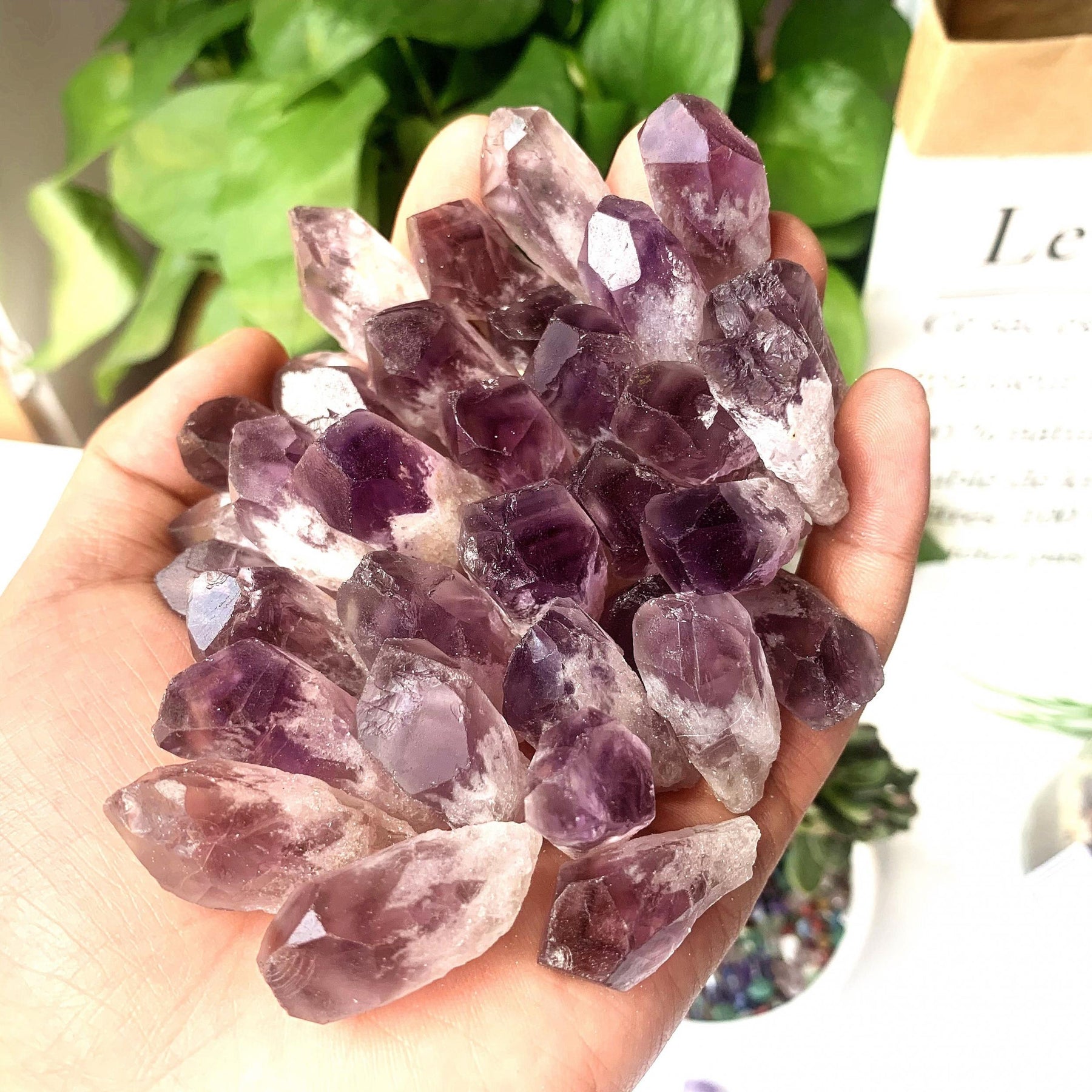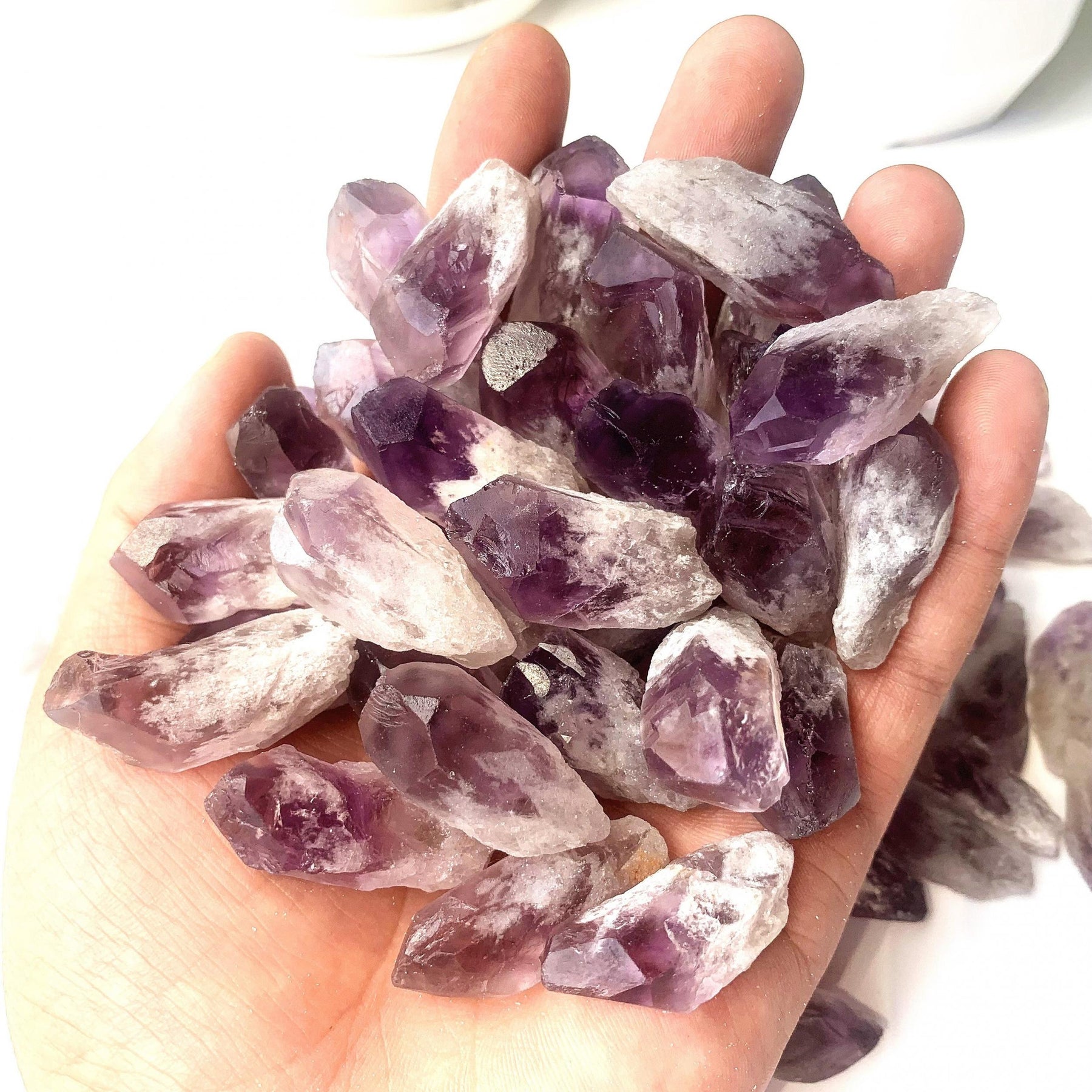 Enhance your energy with this 5-piece set of natural Amethyst raw stone crystal rough points. Perfect for Reiki healing and spiritual practices.