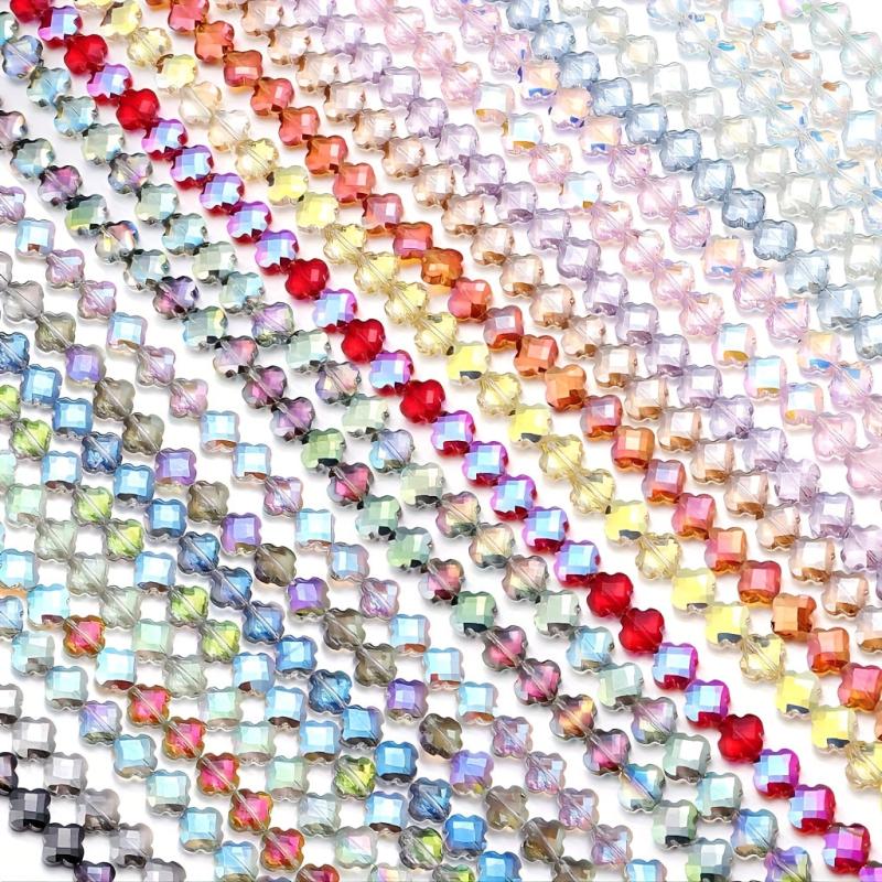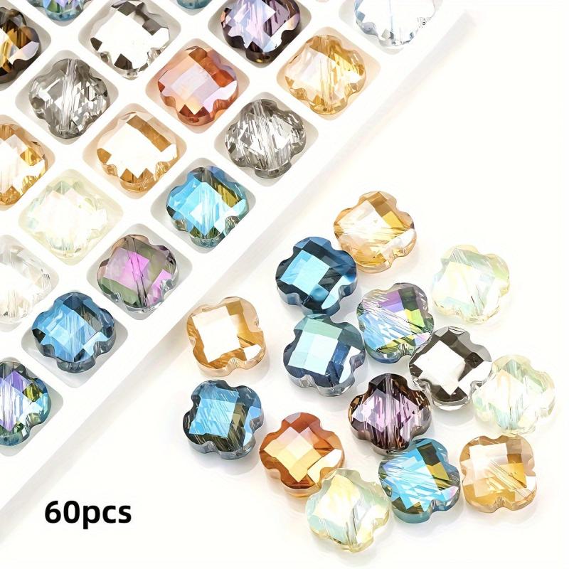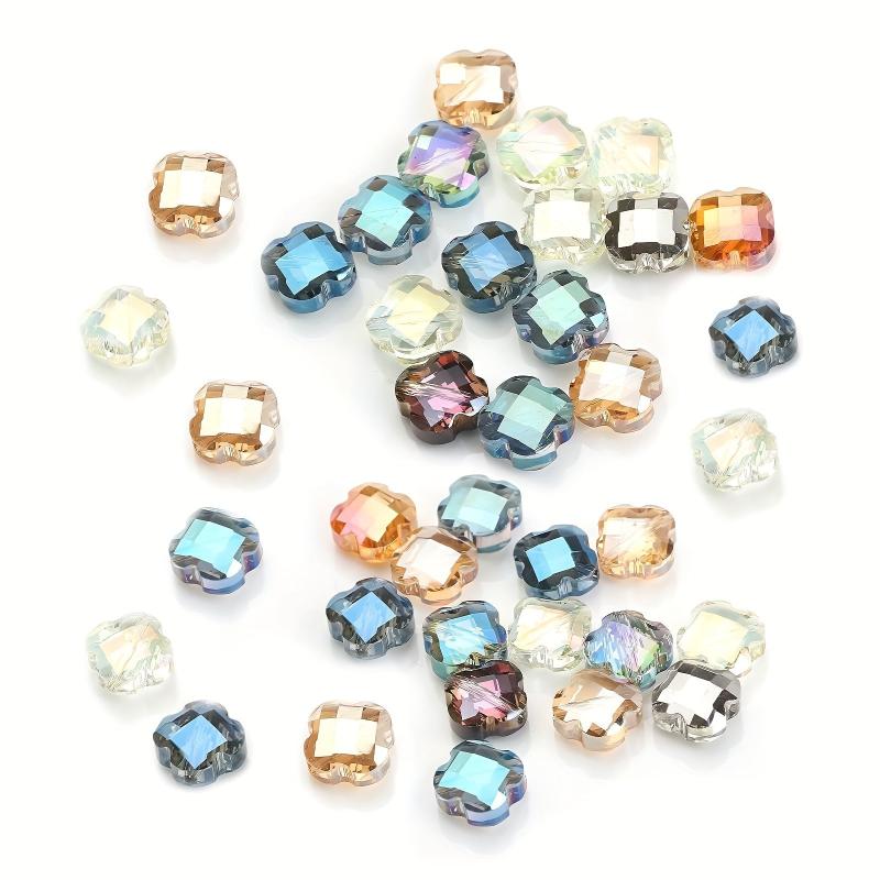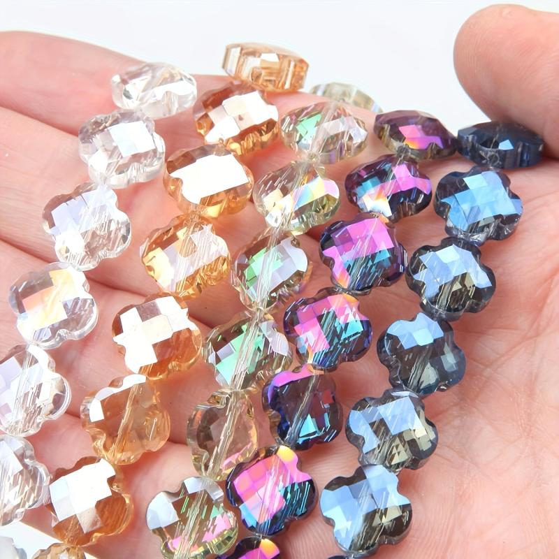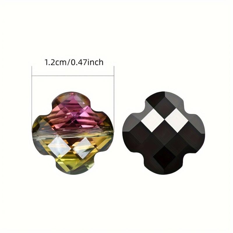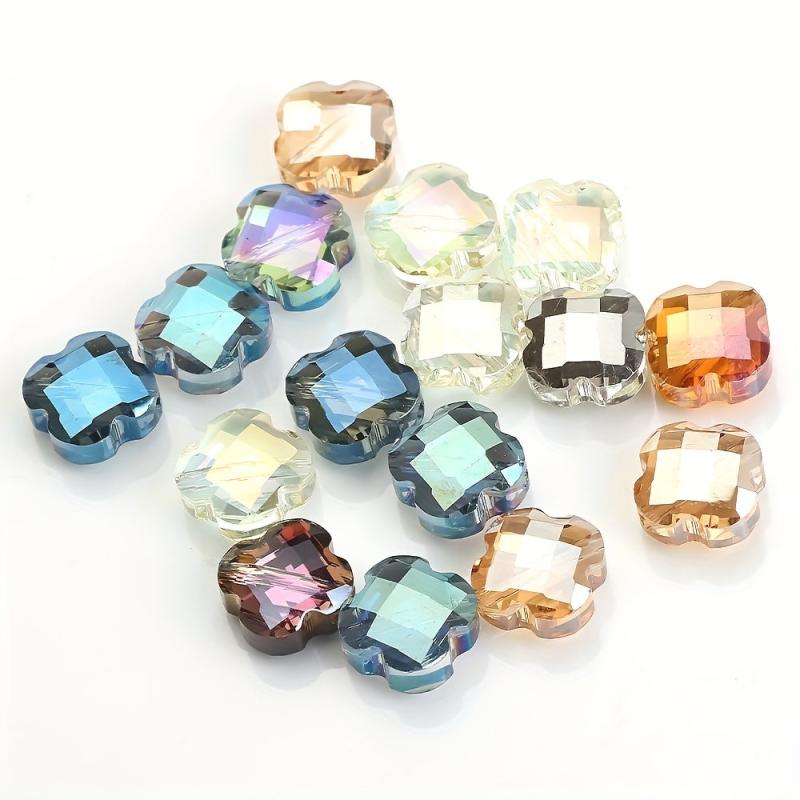 Create beautiful jewelry with these 12mm four leaf clover shaped glass beads. These transparent multicolor beads feature a lucky clover design. Perfect for earrings, pendants, and charms.