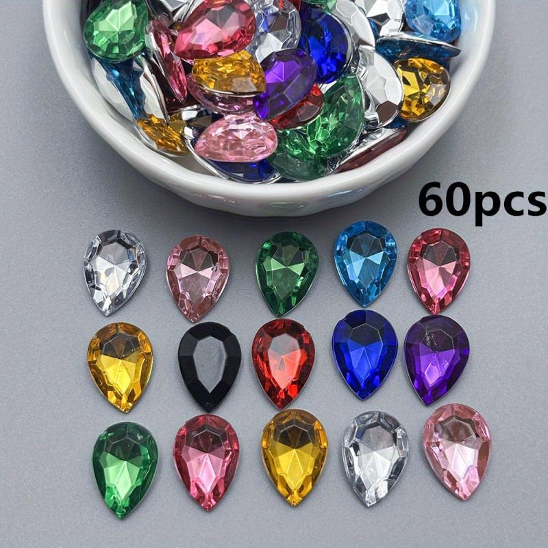 Add a touch of sparkle to your creations with this set of 60 teardrop acrylic rhinestones. Perfect for jewelry making, clothing embellishments, and more!