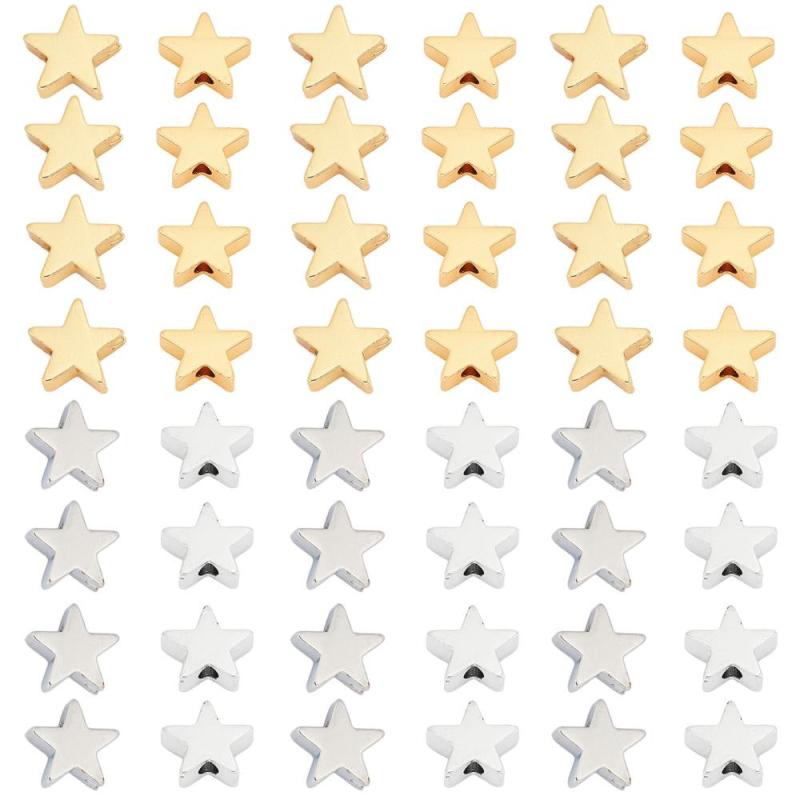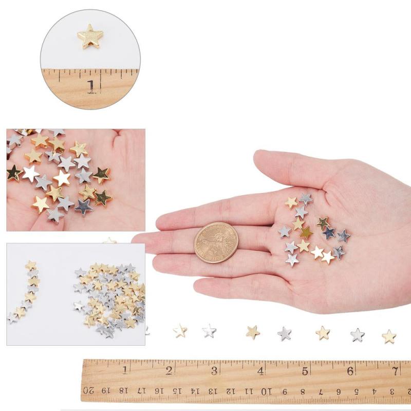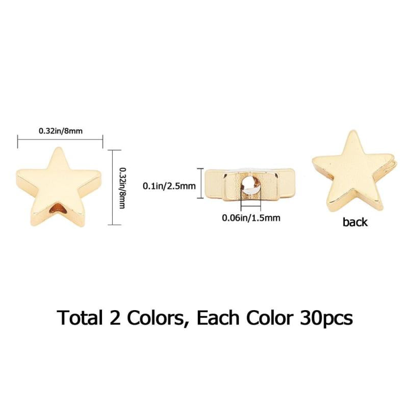 Elevate your jewelry making with this box of 60 Pentagram beads. Ideal for DIY projects, each bead has a straight hole for easy stringing. The beads are 8x8x2.5mm in size with a hole diameter of 1.5mm.