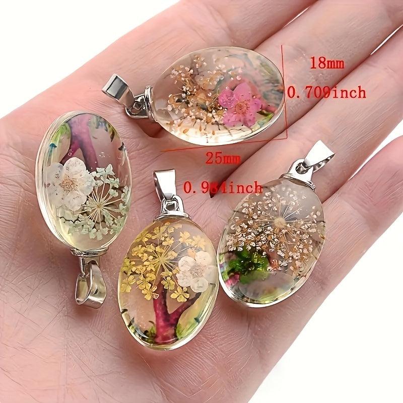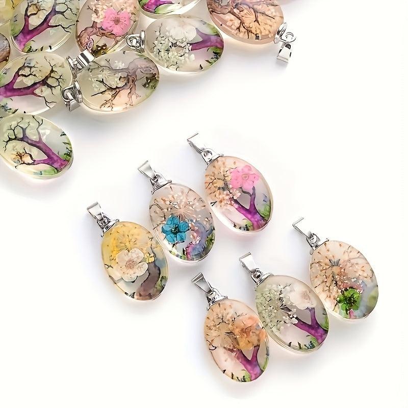 These fashionable oval glass pendants feature a Tree of Life and flower pattern, perfect for creating unique bracelets and necklaces.