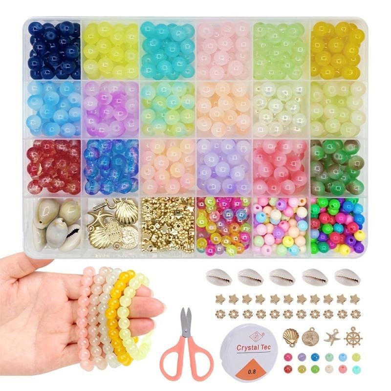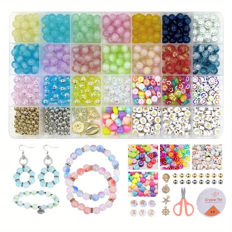 Create stunning jewelry with this 700-piece glass bead set. Perfect for chakra bracelets, necklaces, and more. Includes tools for easy beading.