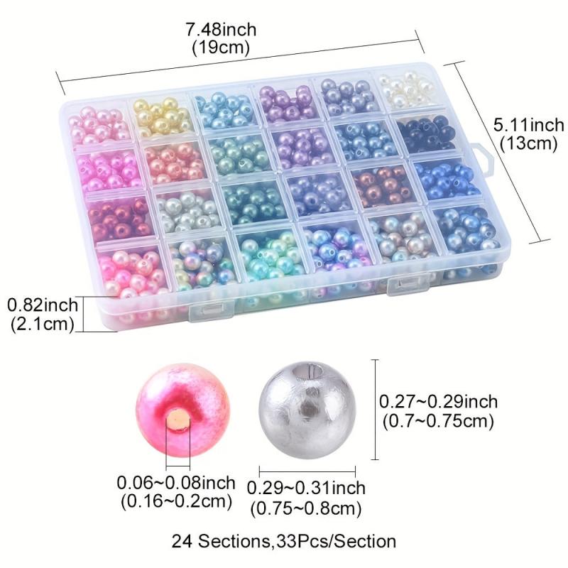 Create stunning jewelry pieces with this box containing approximately 792 pearl acrylic round smooth colored beads in a random mix. Suitable for making bracelets and necklaces.