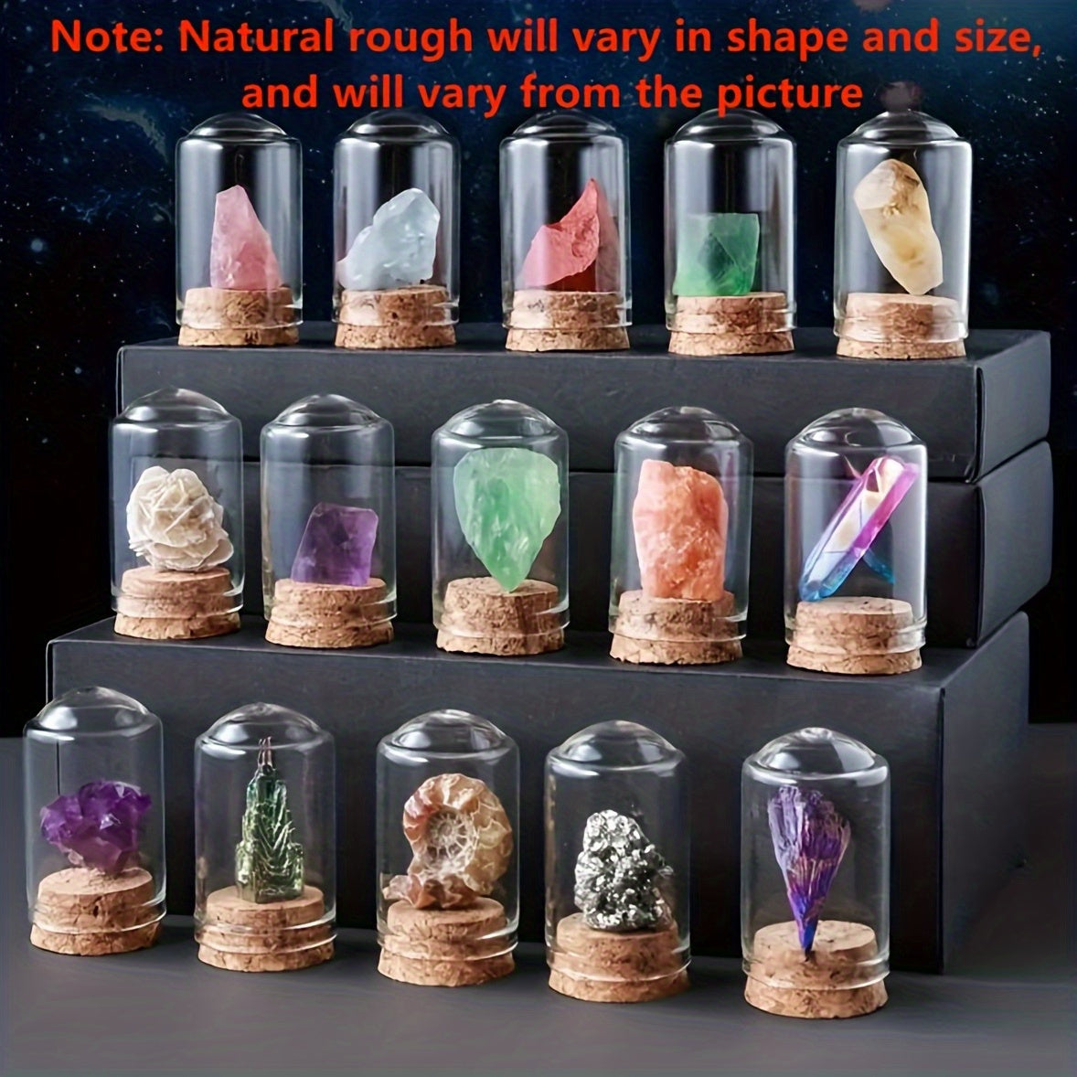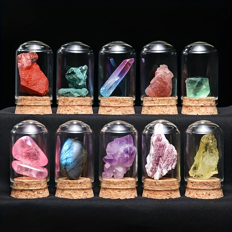 Explore the beauty and energy of natural crystals with these 7 crystal bottles. Perfect for children's science teaching and ore specimens.