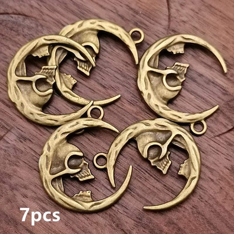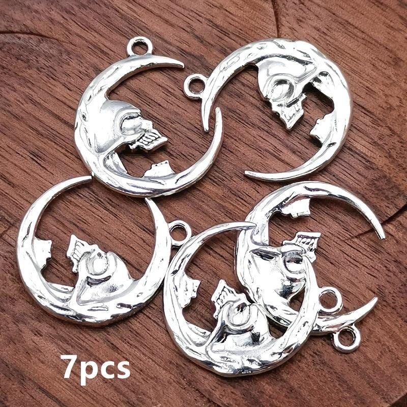 Embrace bohemian style with these vintage moon skull charm pendants for bracelets, necklaces, and earrings. Perfect for DIY jewelry projects.