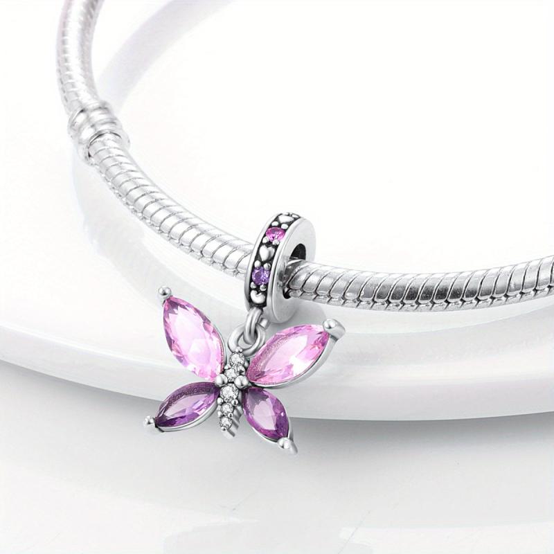 Beautiful 925 silver butterfly glass pendant for creating DIY jewelry. Perfect gift for women and girls.