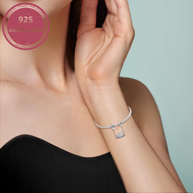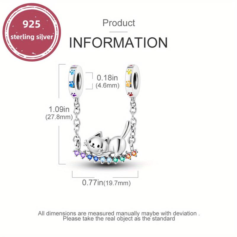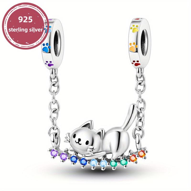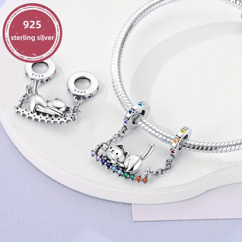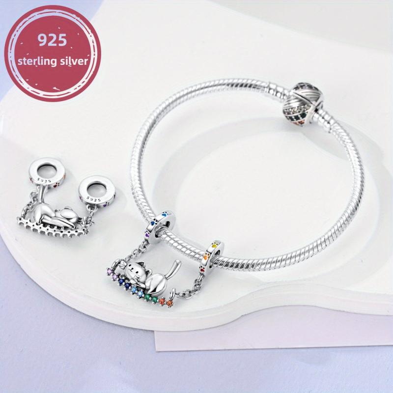 This adorable 925 sterling silver cat rainbow swing pendant beads charm is perfect for bracelets and necklaces. Create your own unique style with this delightful jewelry piece.