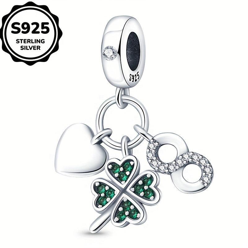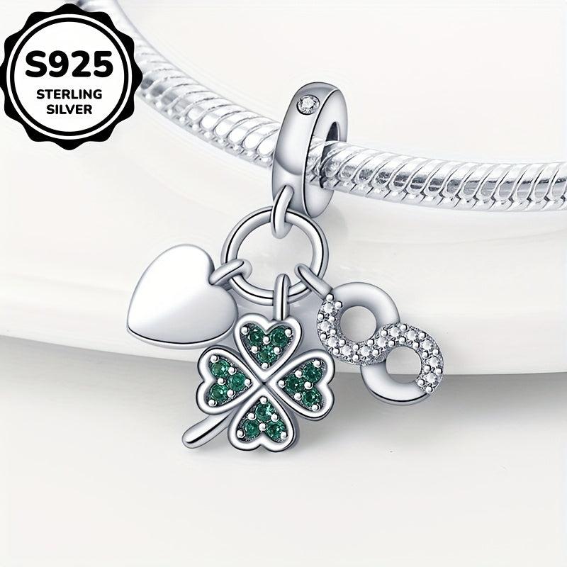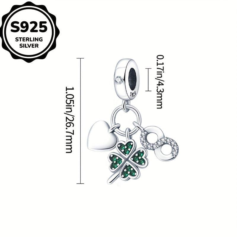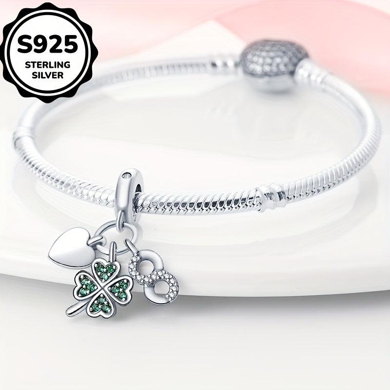 This 925 sterling silver three-piece set features clover lucky symbols, perfect for DIY jewelry making. Ideal for casual or party styles, great for bracelets and beads for women's daily wear.