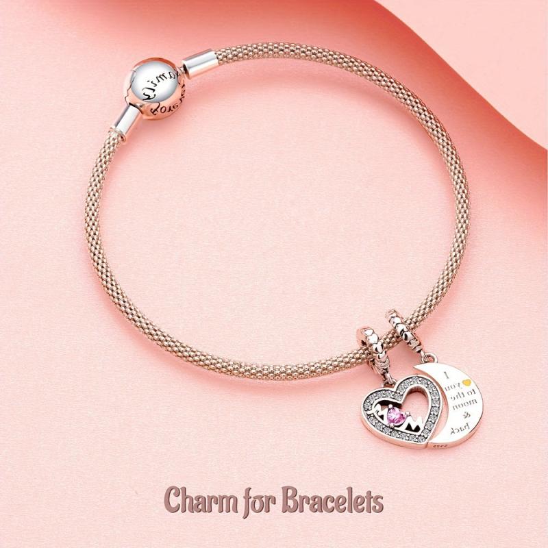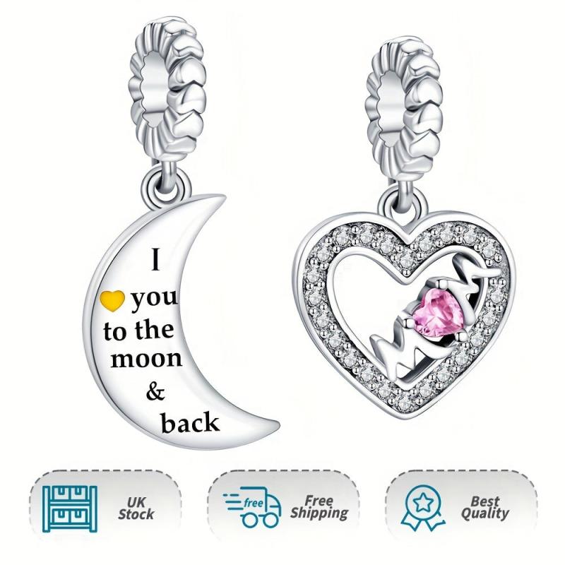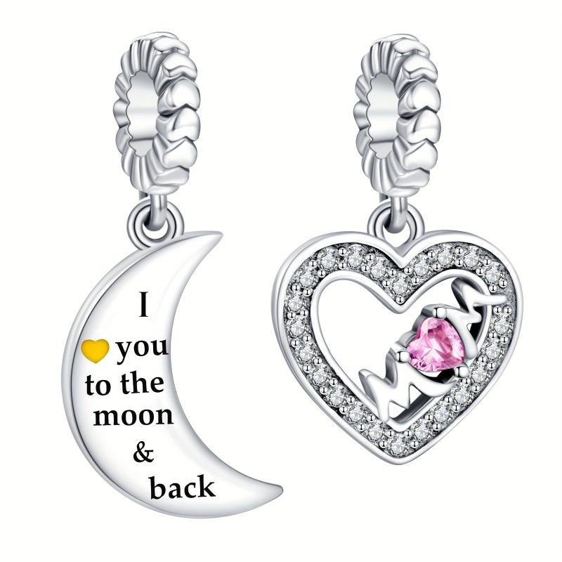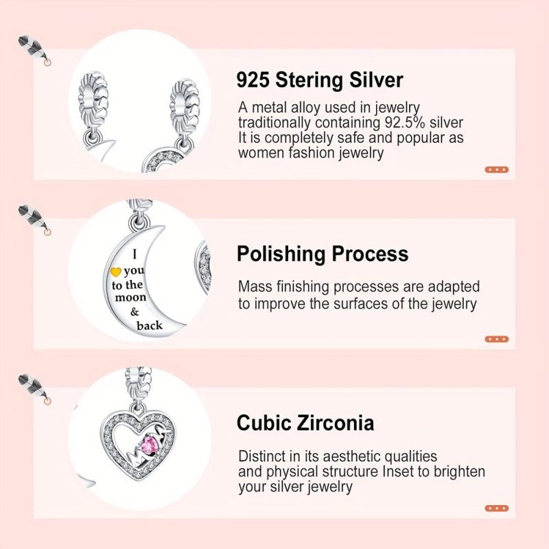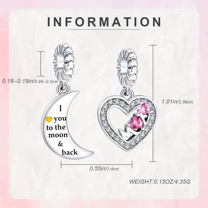 Add a touch of sparkle with this stunning 925 sterling silver heart and moon double dangle charm pendant featuring cubic zirconia. Perfect for DIY jewelry making, this pendant is a great gift for mom and girls of all ages.