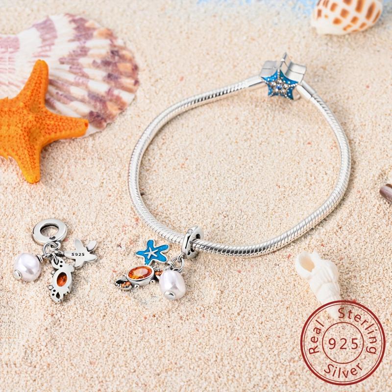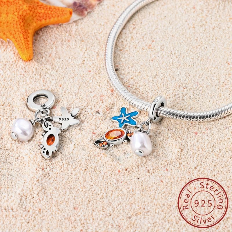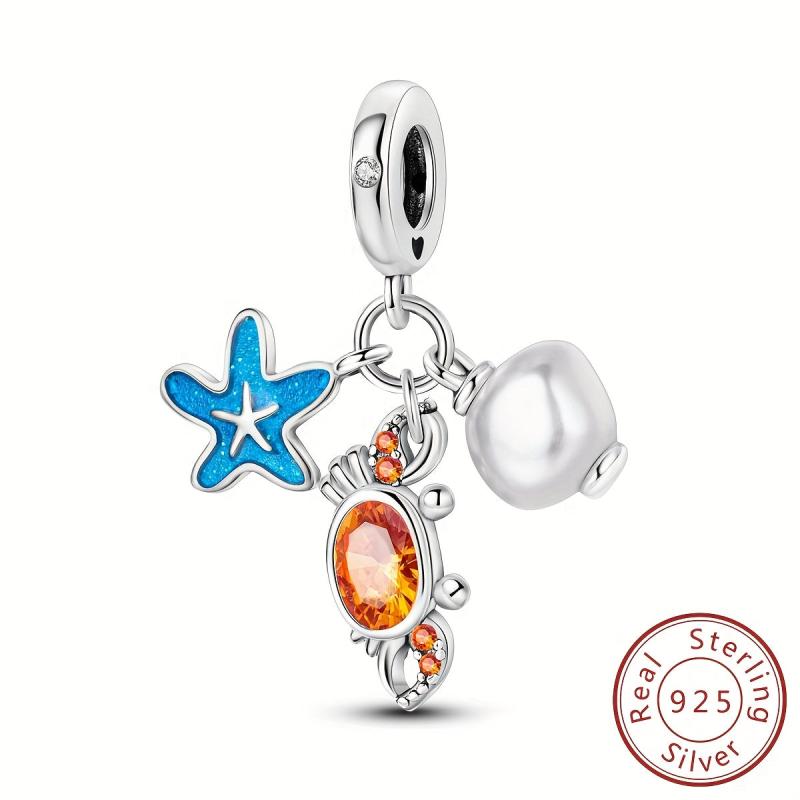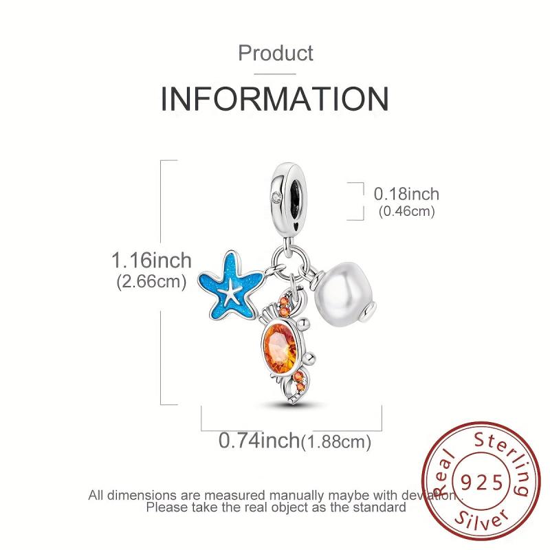 Add a touch of beachy charm to your outfit with this 925 silver starfish and crab charm bracelet. Perfect for summer vacations or parties, this accessory is a great gift for women.