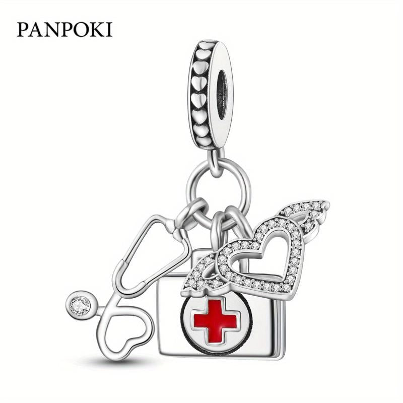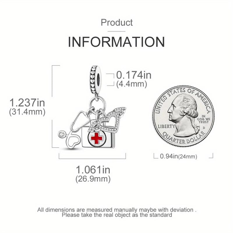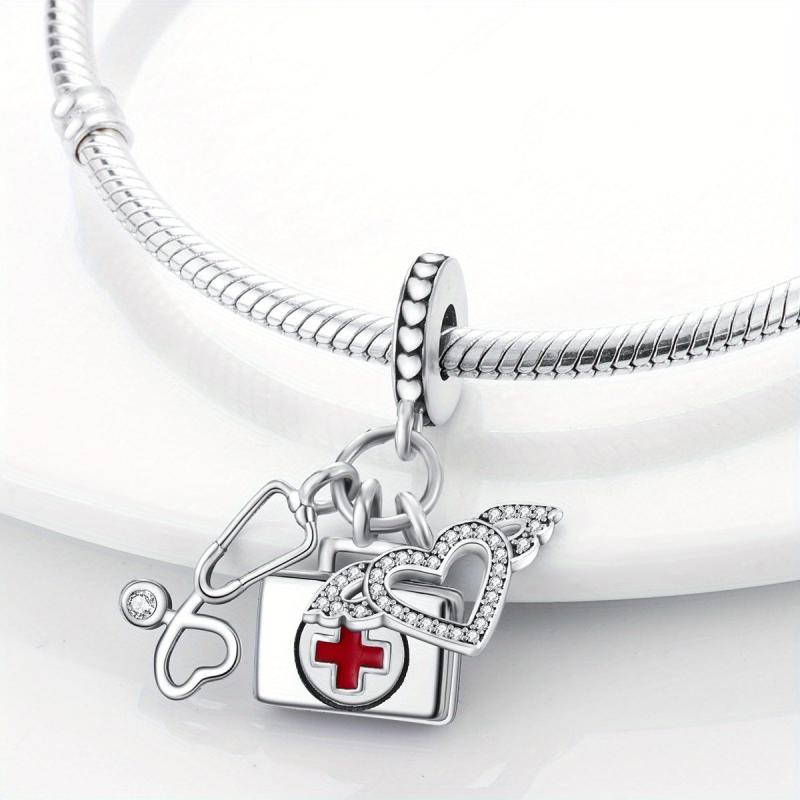 This 925 silver stethoscope pendant is the perfect addition to any bracelet or necklace. It is a great gift for women and girls who are passionate about healthcare. The detailed design of the stethoscope and first aid kit make it a unique and stylish accessory.