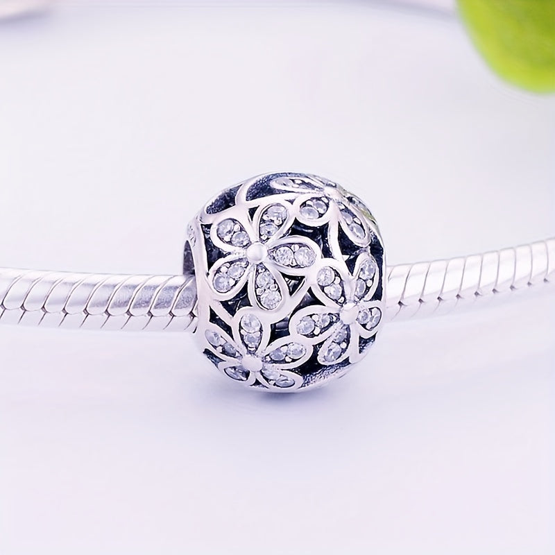 Enhance your charm bracelet with this exquisite 925 sterling silver charm bead featuring spring meadow blooms. Perfect for adding a touch of nature-inspired beauty to your jewelry collection.