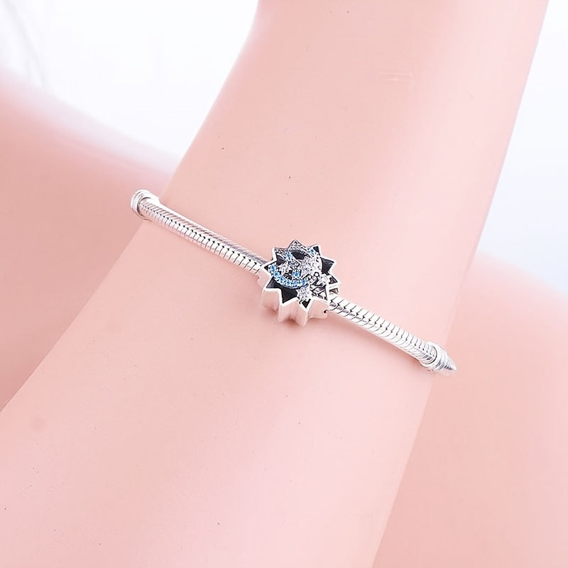 This 925 sterling silver bead features a ten-pointed star shape, perfect for creating unique jewelry pieces. Add a touch of elegance to your designs with this beautiful star bead.