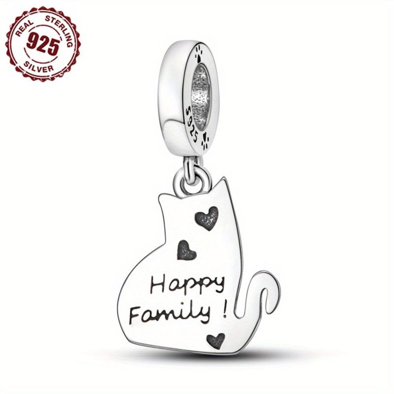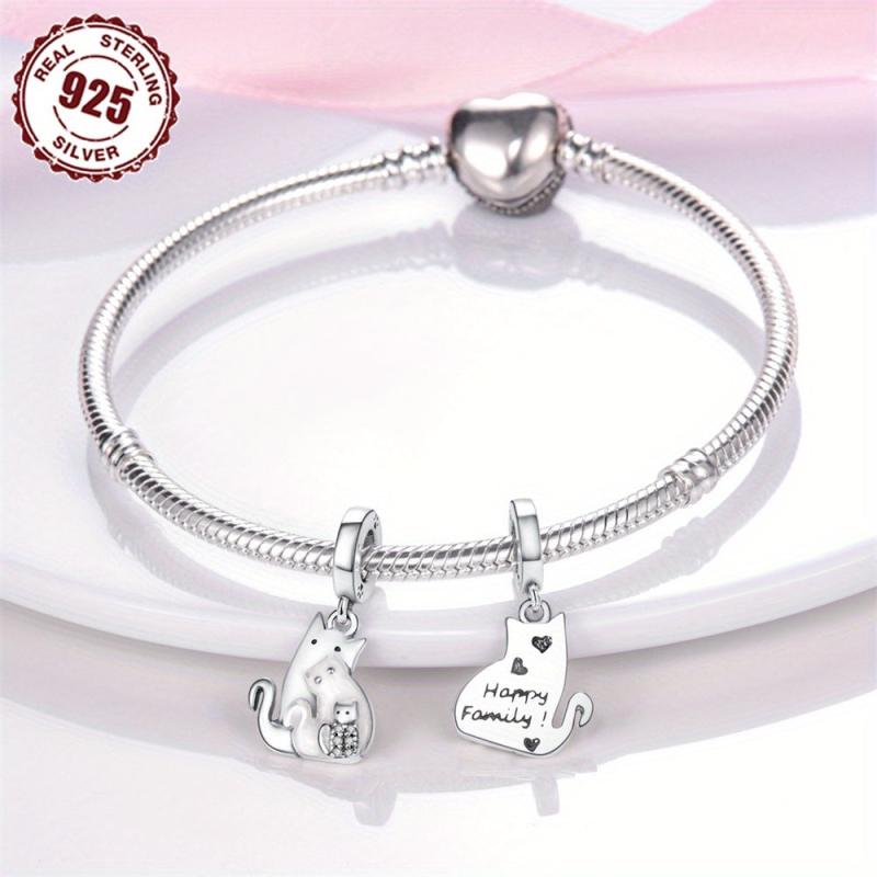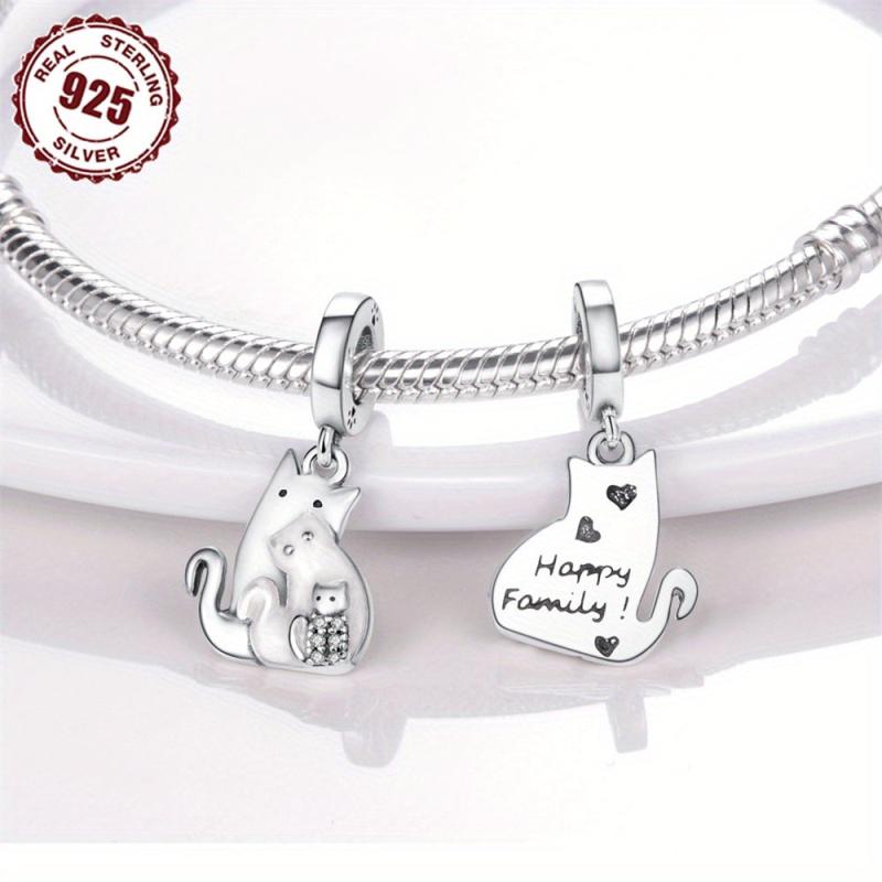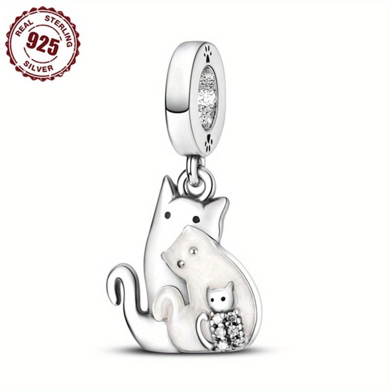 This adorable cat family pendant charm is made of 925 sterling sliver, perfect for DIY jewelry projects. A great gift for cat lovers.