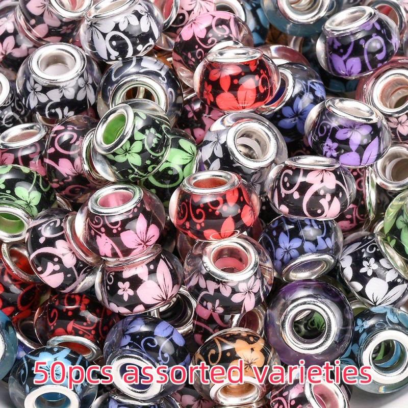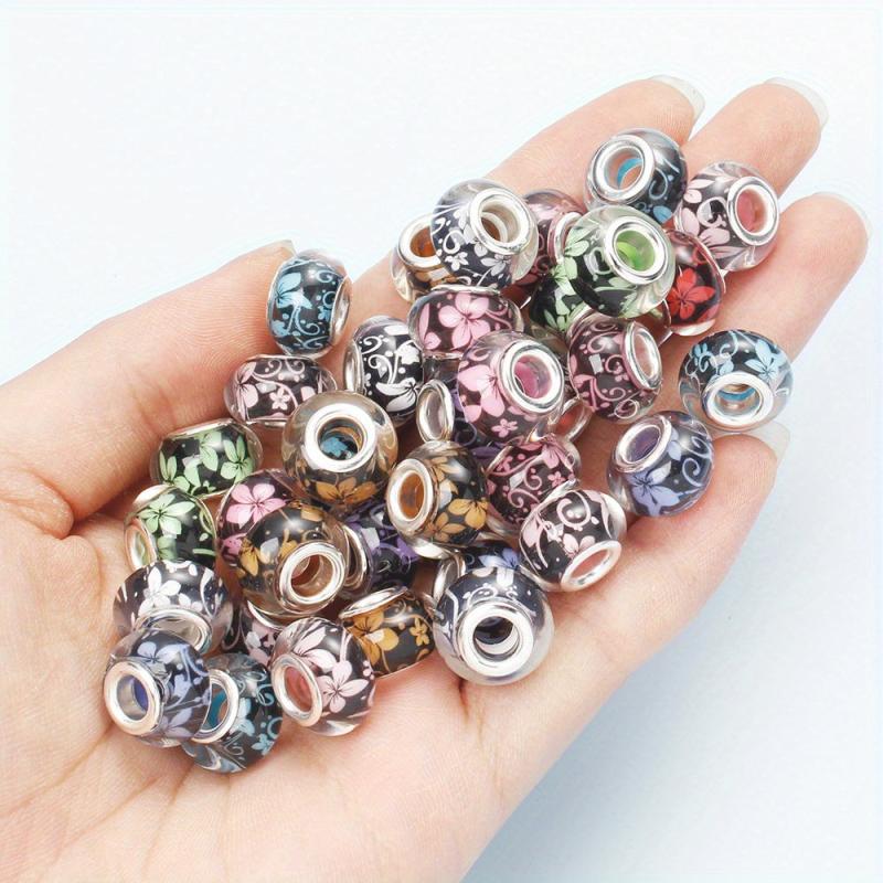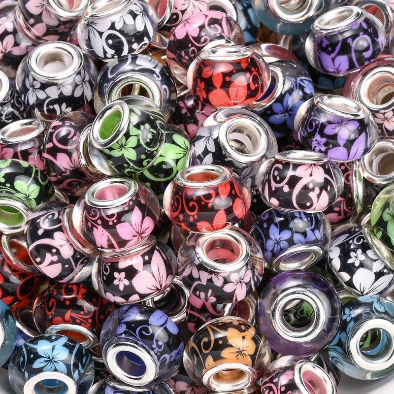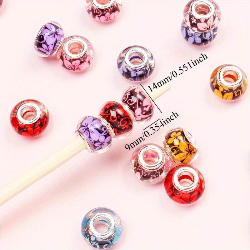 Create beautiful jewelry with this set of 9x14mm floral print acrylic beads. The clear beads feature a big hole design, perfect for various jewelry making projects.