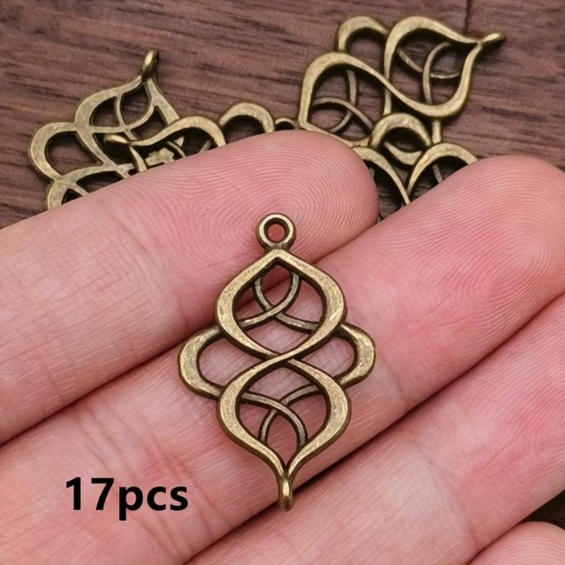Explore your creativity with this set of 17 Bohemian style charms made of zinc alloy. Ideal for creating unique bracelets, necklaces, and earrings.