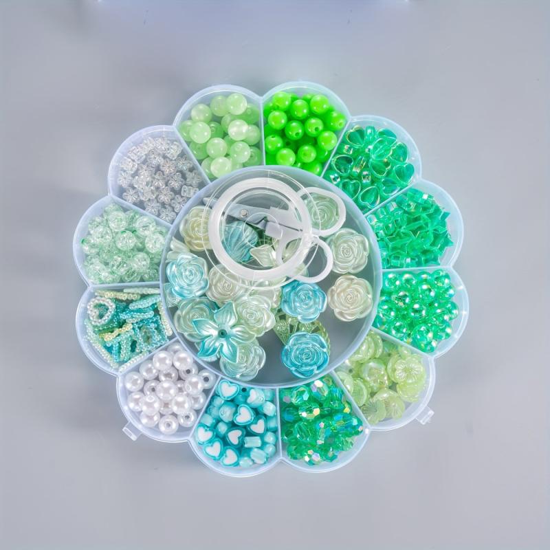 This set includes a 13 Compartment Flower Box filled with beads featuring a Christmas theme. Perfect for DIY bracelet and phone chain projects.