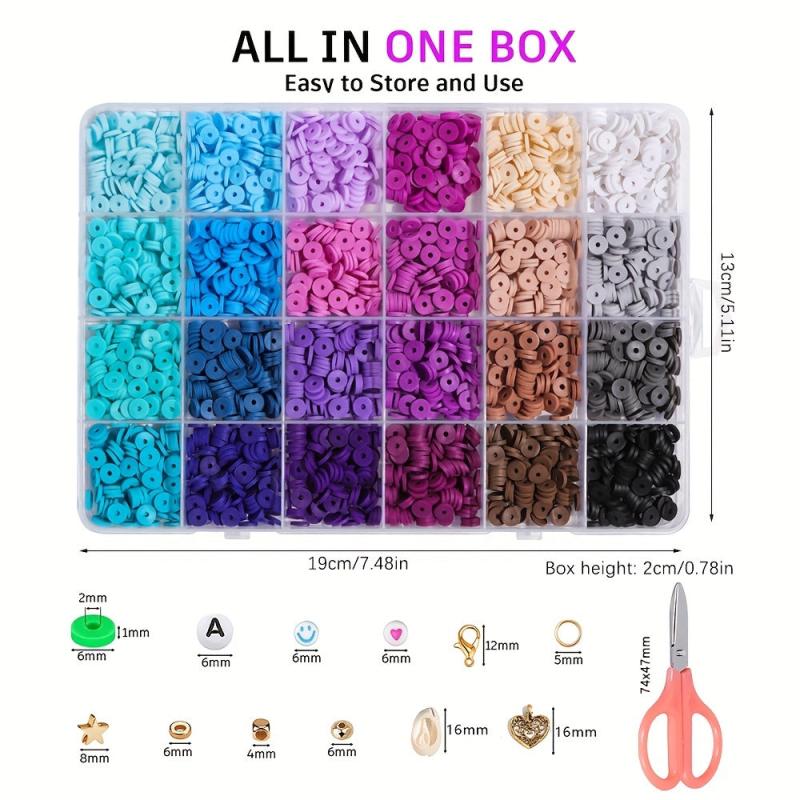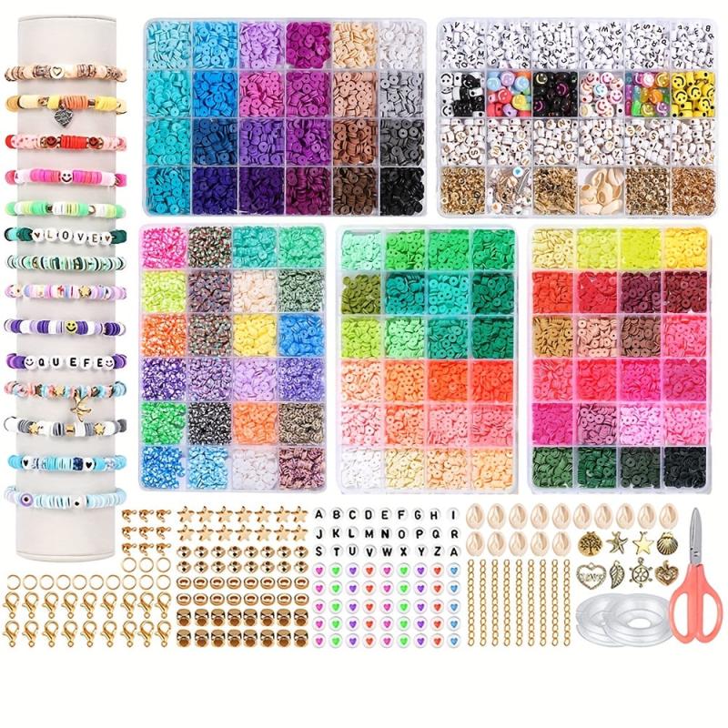 Create unique jewelry with this kit that includes 10700 pieces of 96 colors clay beads, letter beads, and everything you need for bracelet and necklace making.