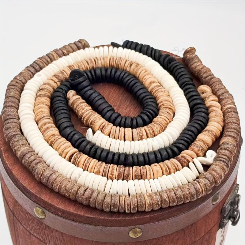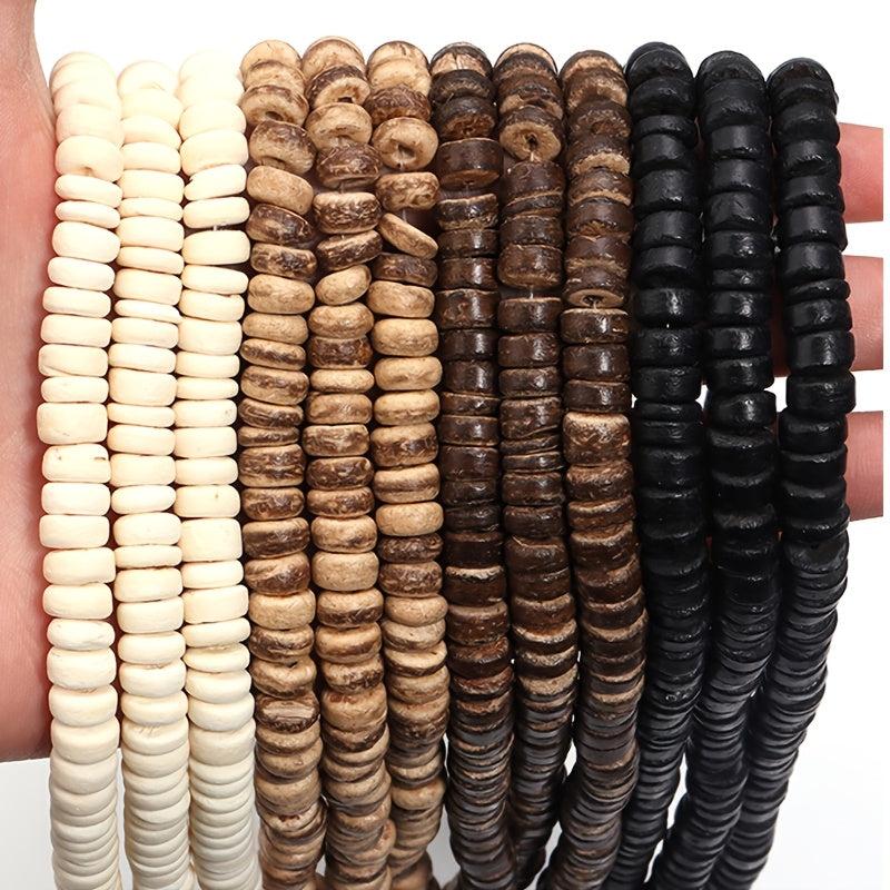 Create beautiful bracelets and necklaces with this 440pcs set of natural coconut shell spacer beads. Featuring 4 colors (brown, beige) and a textured design, these beads are perfect for your crafting projects.