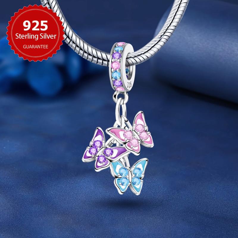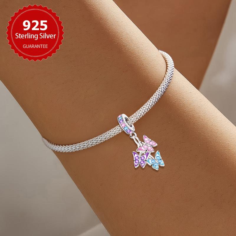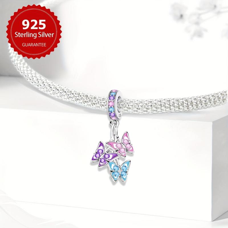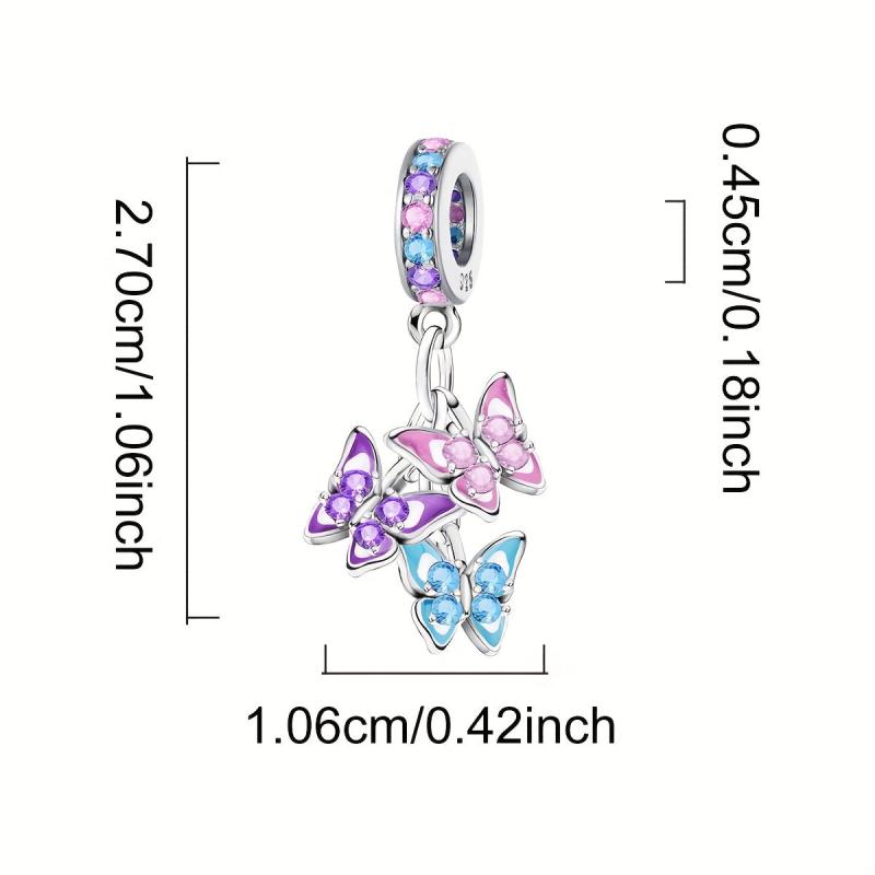 This sweet and colorful butterflies pendant is perfect for DIY jewelry making. It is made of S925 sterling silver and can fit bracelets, bangles, and necklaces. A great gift for women, especially mothers.