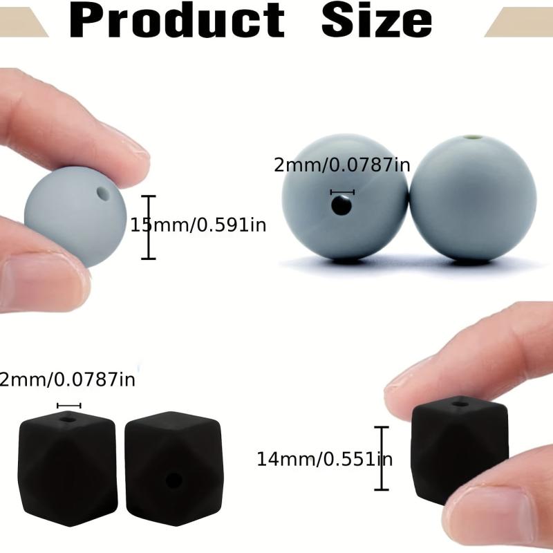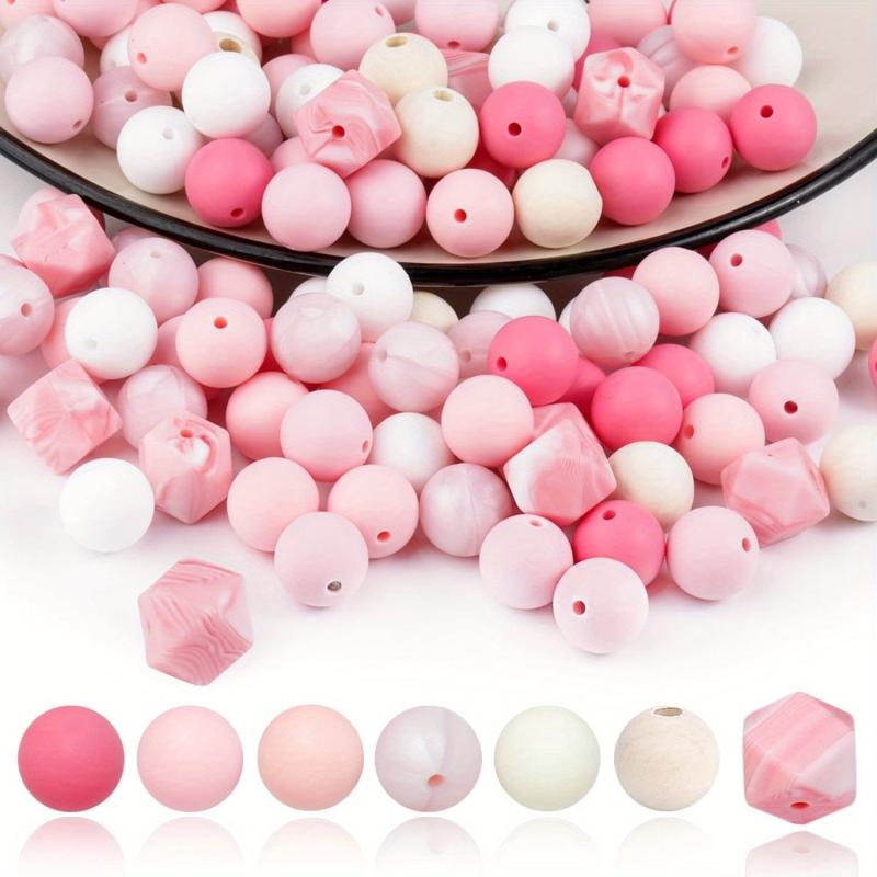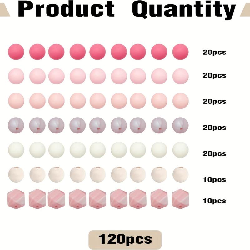 This set includes 110 colorful round and octagonal silicone beads along with 10 round wood beads, perfect for creating unique jewelry pieces. The beads are vibrant and durable, ideal for crafting.