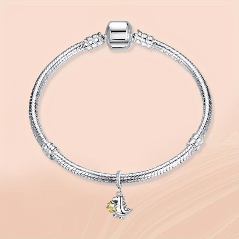 Add a touch of whimsy to your jewelry collection with this adorable dinosaur charm pendant. Made of high-quality 925 sterling silver, this little dino is holding a yellow pentagram. Perfect for holiday DIY projects or as a gift for a girl.