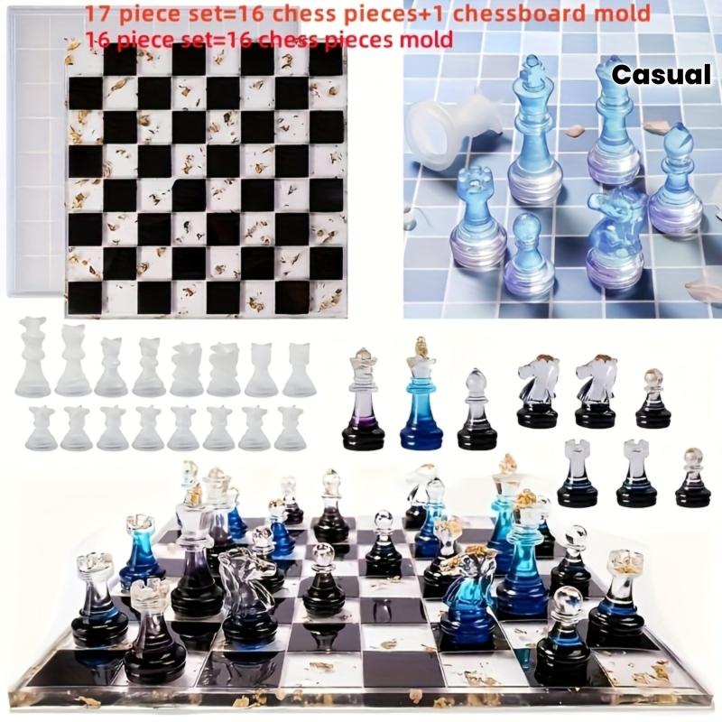 Bring out your creativity with this 3D resin chess mold set that includes 16 chess pieces and a chessboard mold. Create your own unique chess board game using resin cast ep.