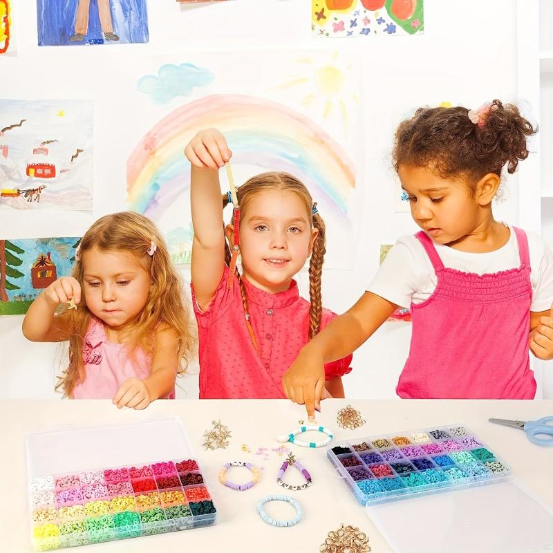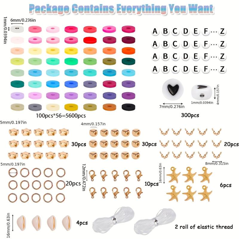Create your own unique jewelry with this DIY kit that includes colorful clay beads in 56 different colors. Make beautiful jewelry pieces with spacer and flat round polymer clay beads.