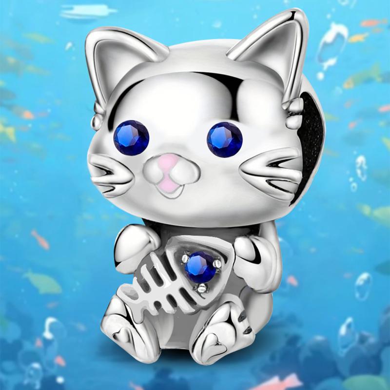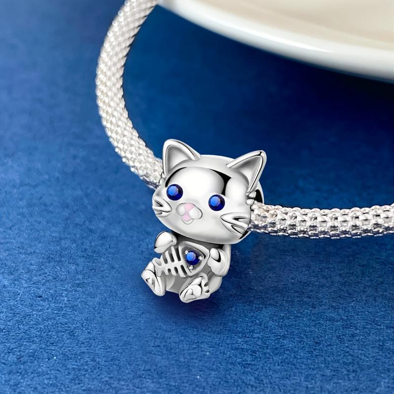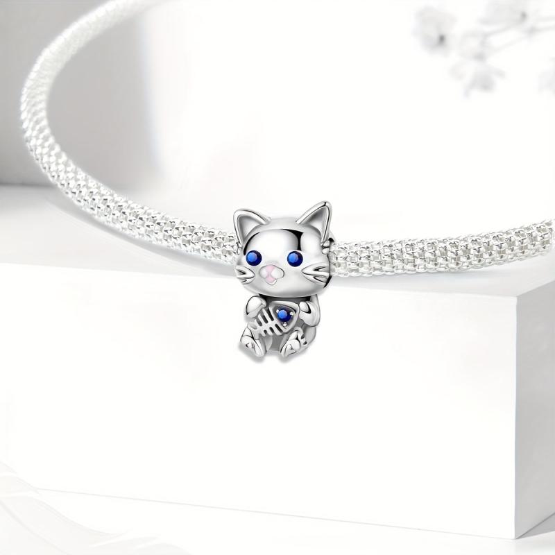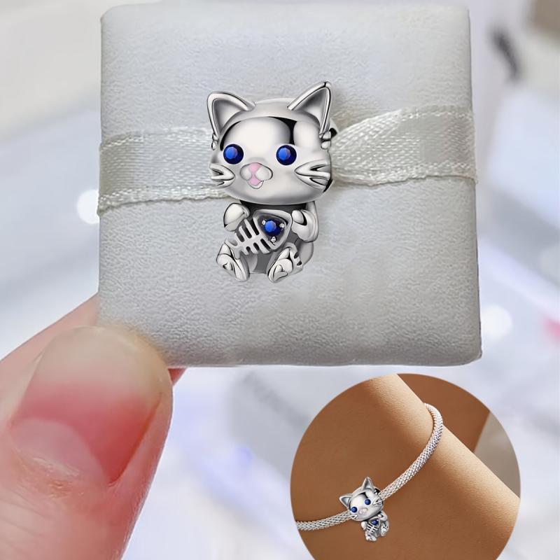 This fishbone cat bead is a charming addition to your jewelry making supplies. It is made of 925 silver plated material, suitable for creating unique bracelets. Perfect for birthday, Valentine's Day, or Mother's Day gifts.
