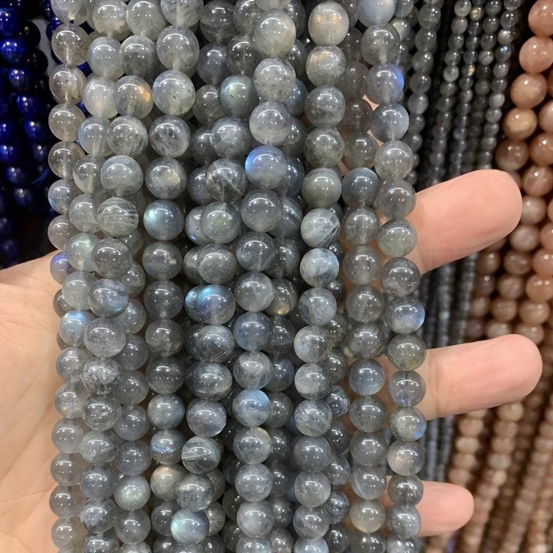 Create stunning jewelry with this high AA level natural labradorite gemstone beads strand. These polished round beads reflect light beautifully, perfect for any DIY project.