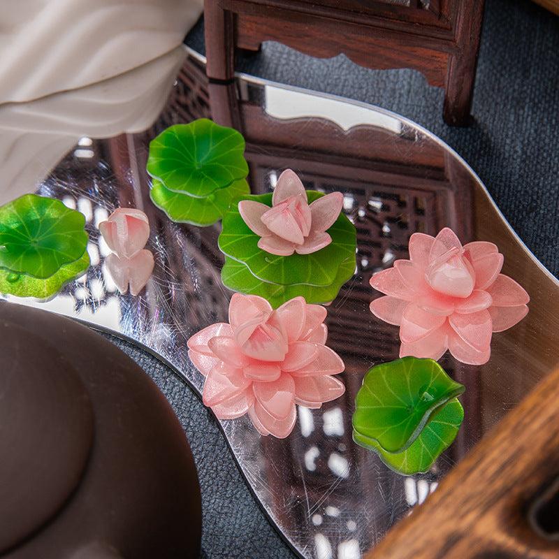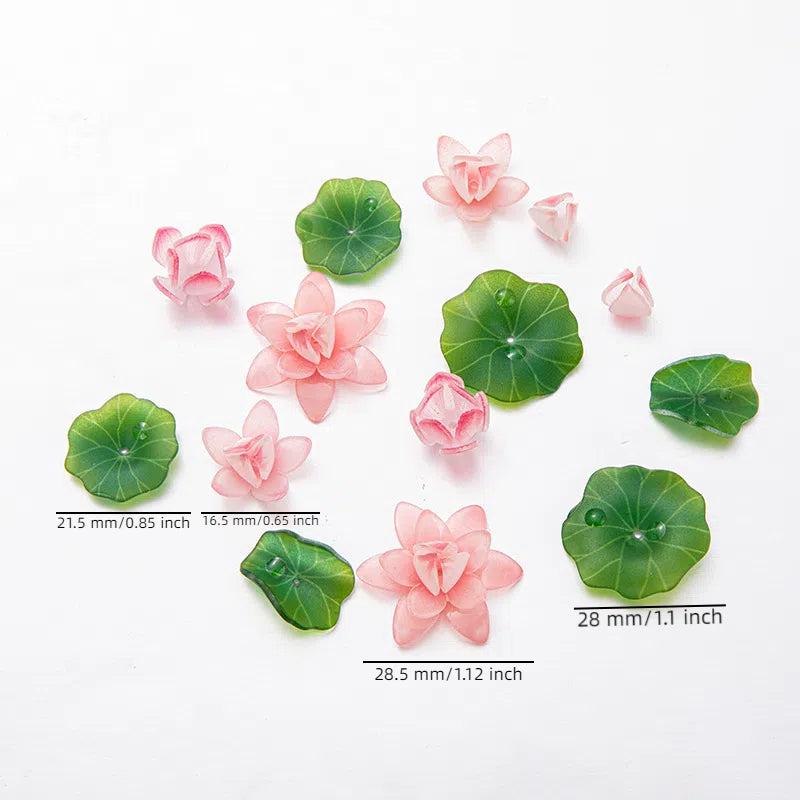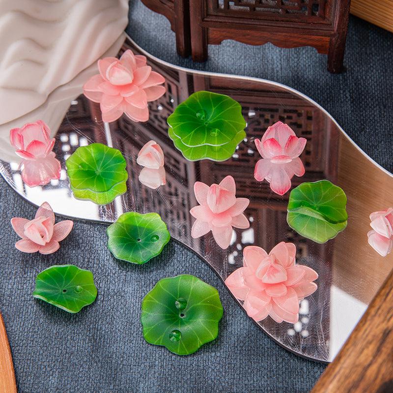 Create stunning jewelry pieces with this lotus and lotus leaf resin accessories set. Perfect for making earrings or a headpiece.