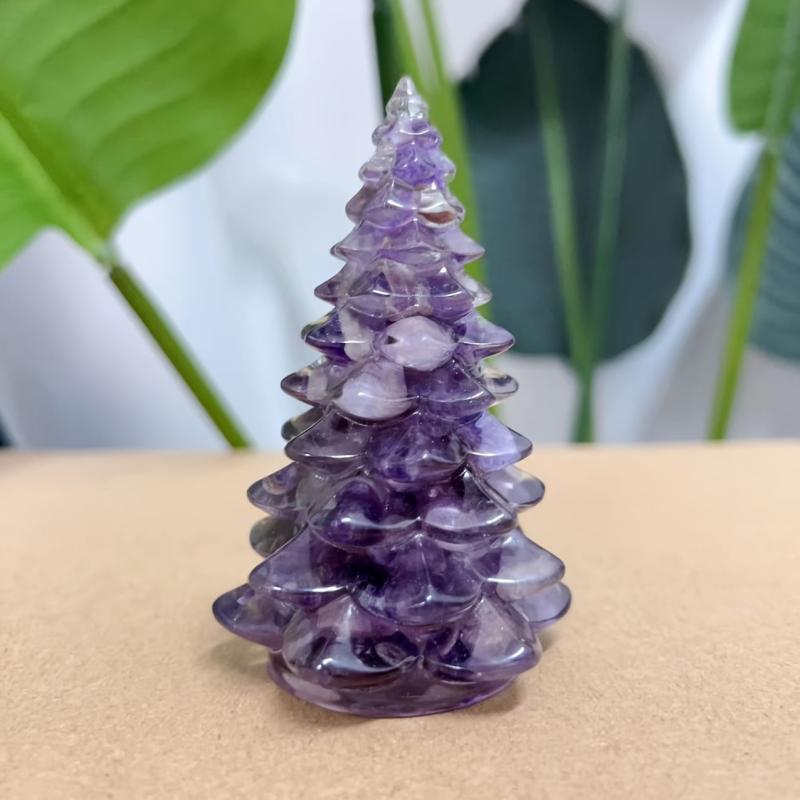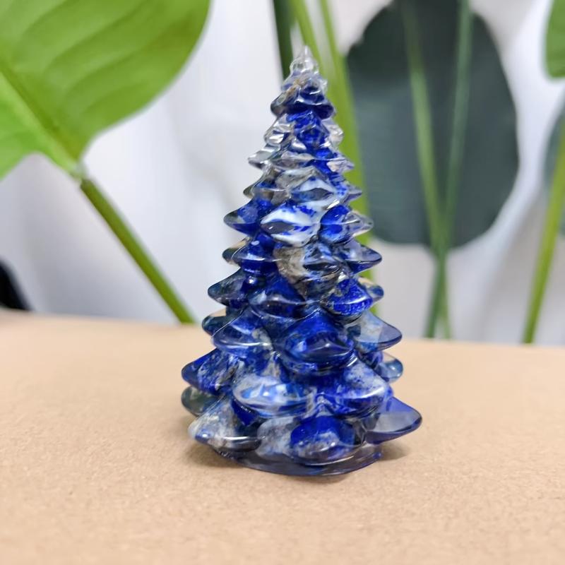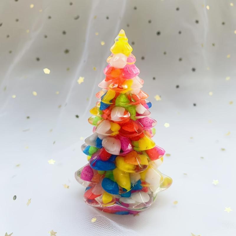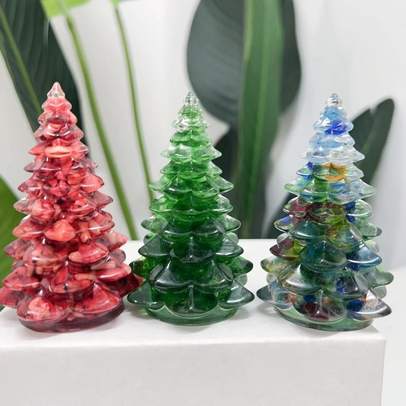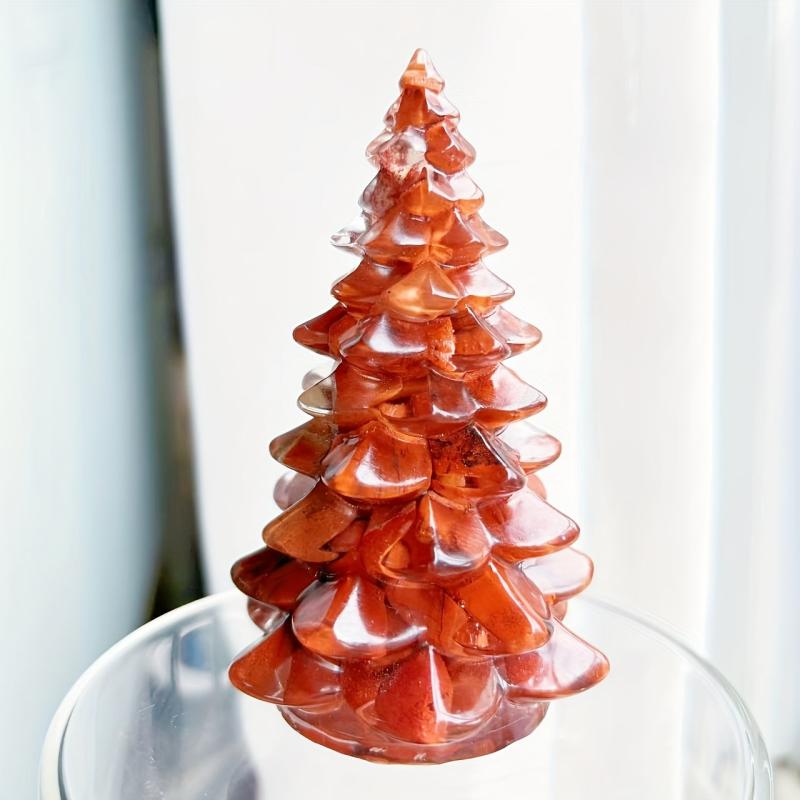 Beautiful natural resin stone shaped like a Christmas tree, perfect for jewelry making, home decor, and holiday crafts.