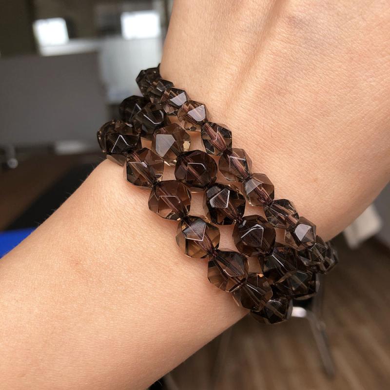 These natural 6-8-10mm faceted smoky crystal quartz beads are perfect for daily wear. Their charming polygonal shape adds a touch of elegance to any outfit. Made from high-quality natural stone, they are ideal for creating unique charm jewelry pieces.