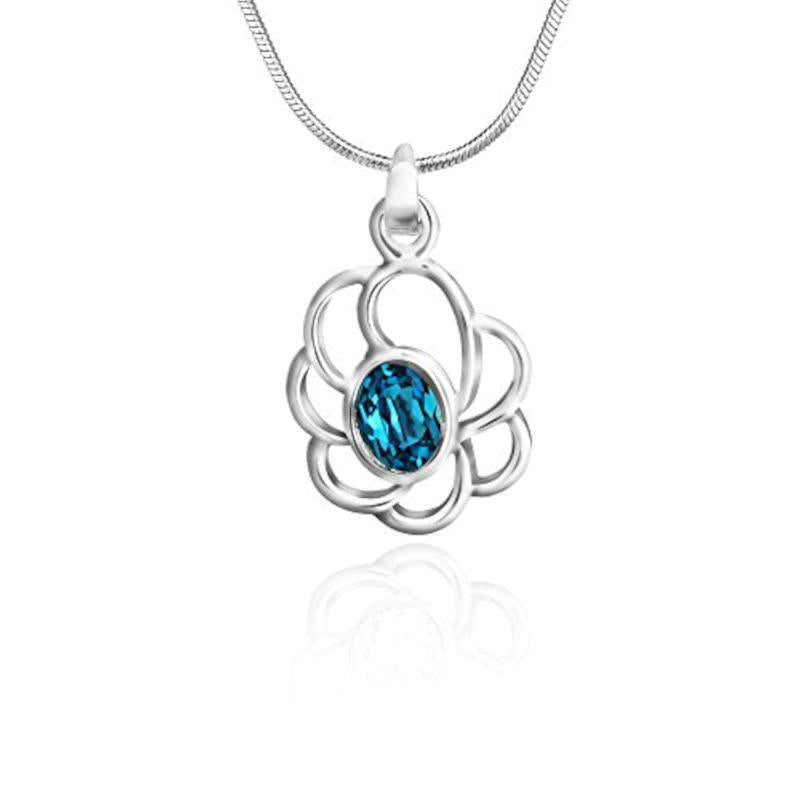 Exquisite oval floral pendant featuring stunning Swarovski Crystals in a rhodium plated setting.