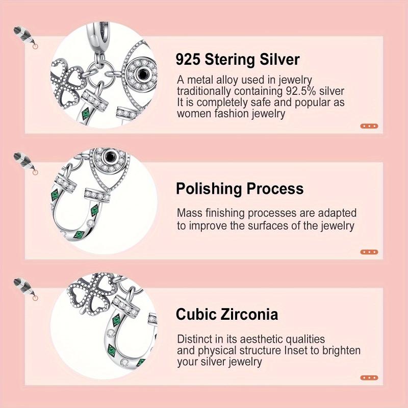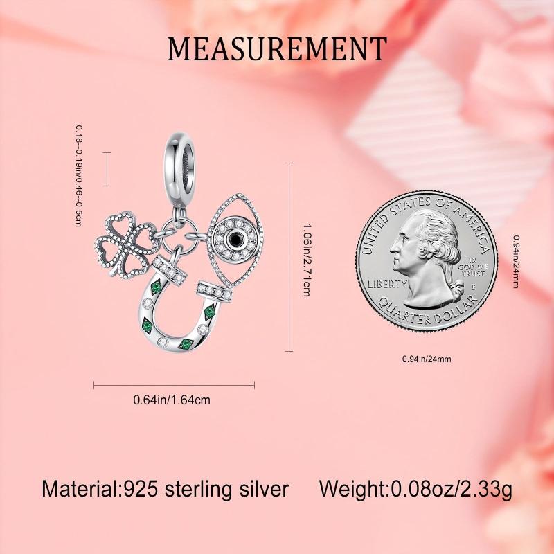 This S925 sterling silver charm pendant is a lucky addition to your jewelry collection. It is designed to fit European bracelets and necklaces.