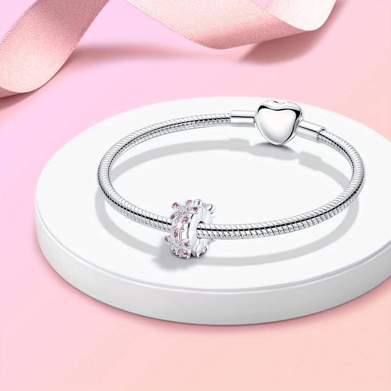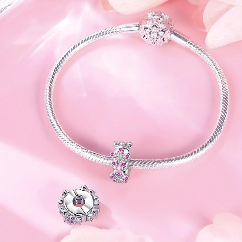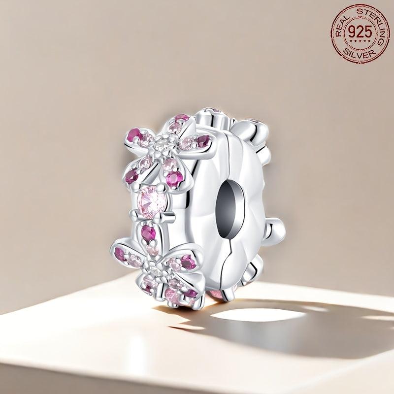 This petal pink charm positioning buckle is made of S925 pure silvery material, perfect for creating custom bracelets and necklaces.