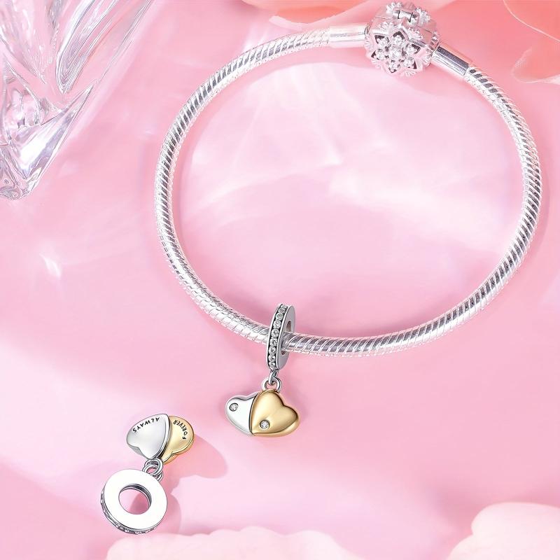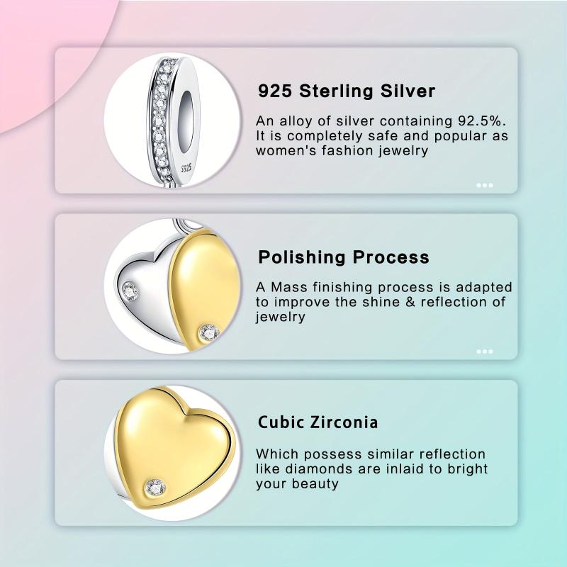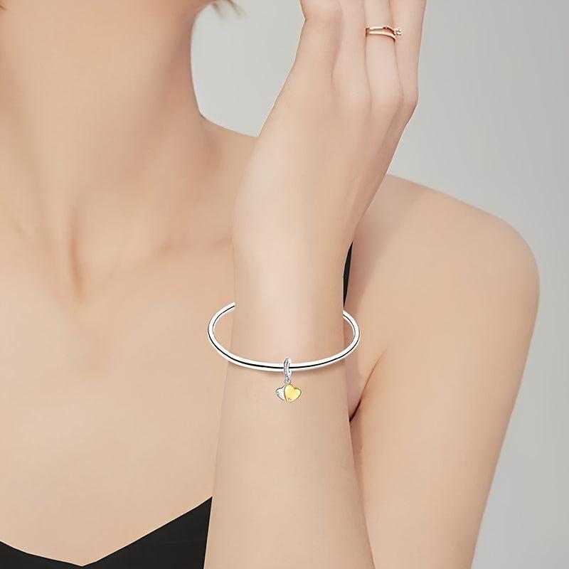 This S925 pure silvery charm pendant is a beautiful retro love yellow design, perfect for creating unique bracelets and necklaces.