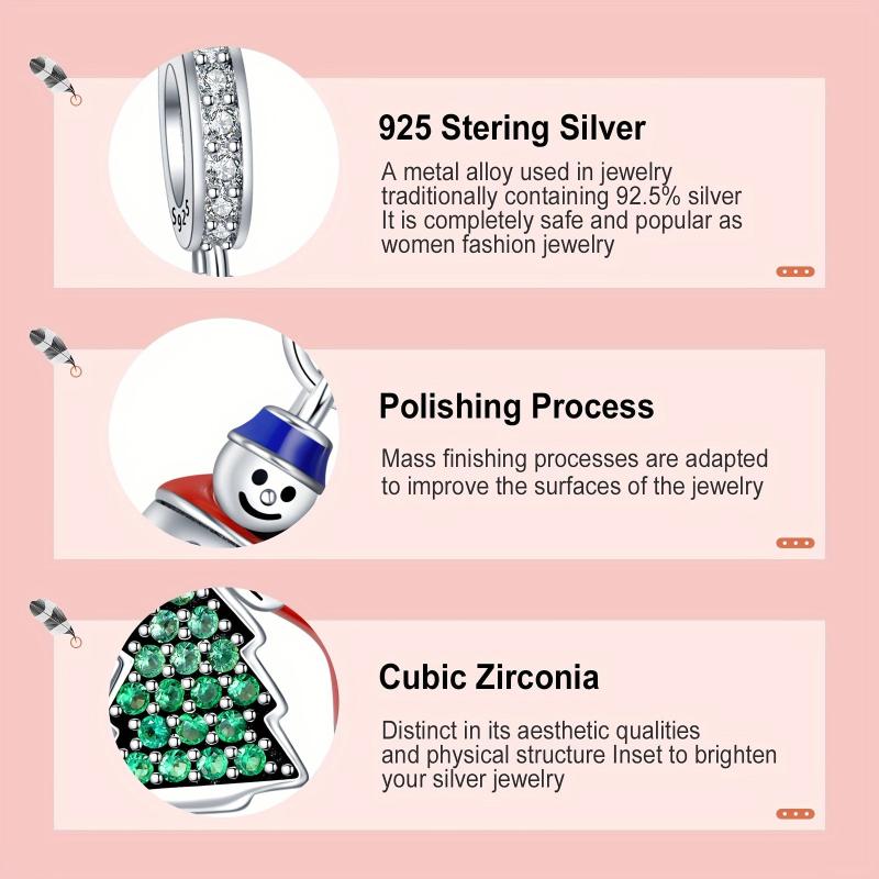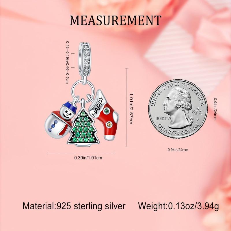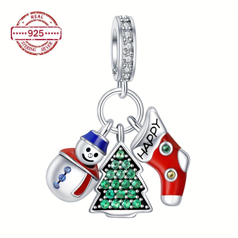 This S925 sterling silver charm pendant features a Christmas snowman, tree, and triple dangle design. Perfect for DIY jewelry making, fits women's European moment bracelets and necklaces. Great Christmas gift idea!