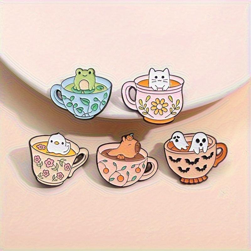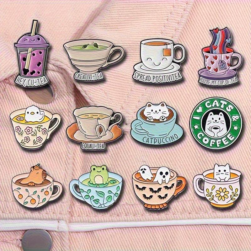 These cute teacup and coffee cup shaped pins are perfect for adding a touch of whimsy to your clothing, backpacks, shirts, sweaters, and more. They make a great gift for friends who love unique accessories.