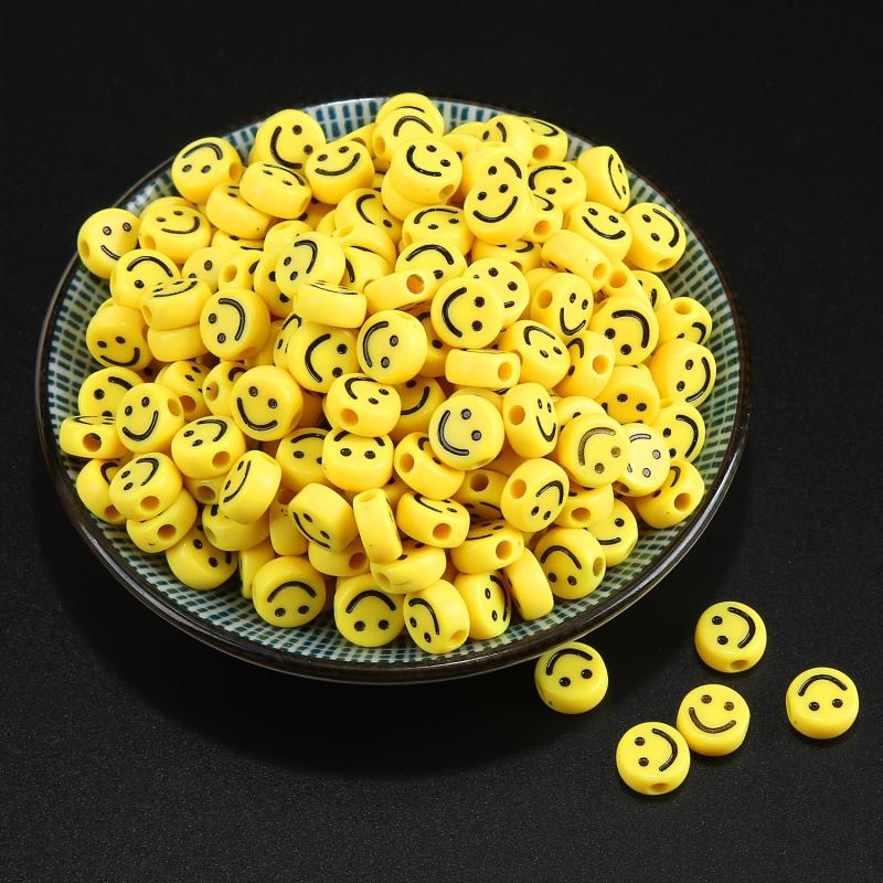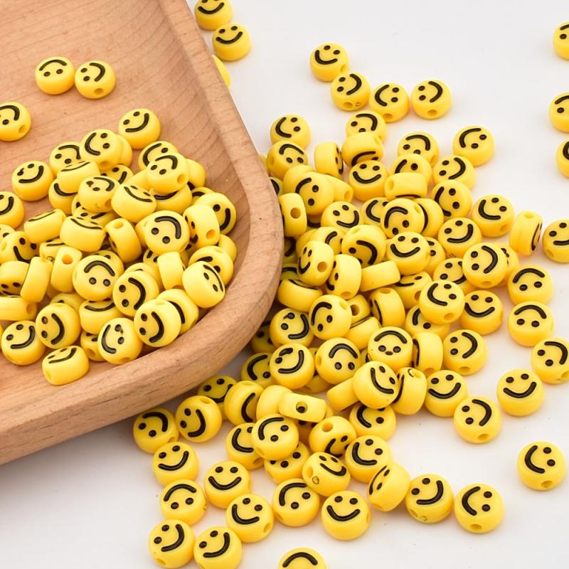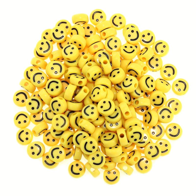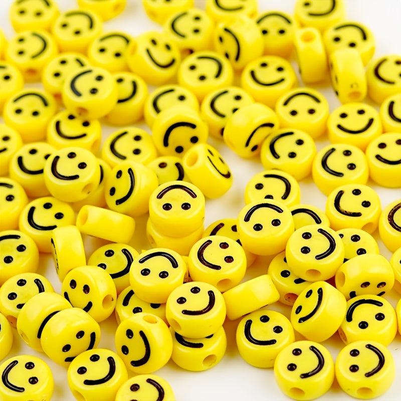 Get creative with these smile face acrylic beads perfect for jewelry making, DIY crafts, and friendship bracelets. The 7mm round synthetic beads offer a boho style without plating, making them versatile and fun to use.