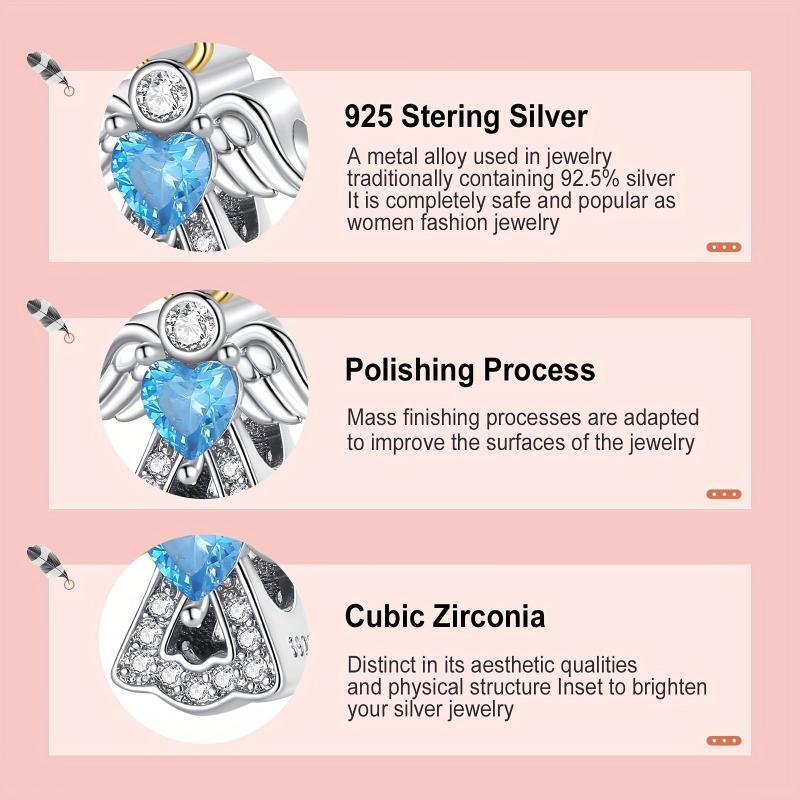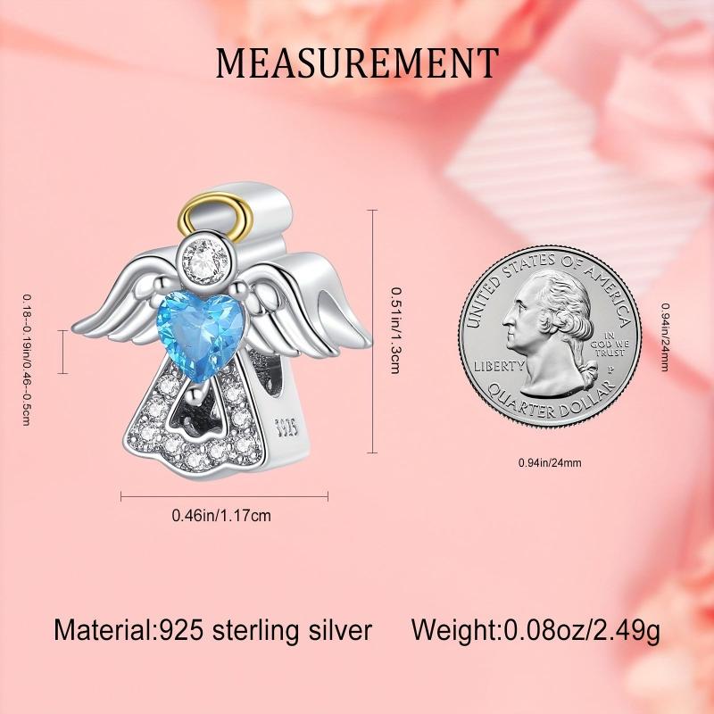 Beautiful S925 sterling silver charm featuring angel feather wings design. Perfect for bracelets and necklaces.