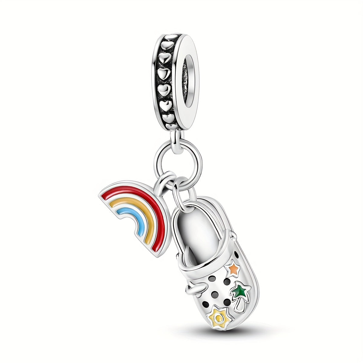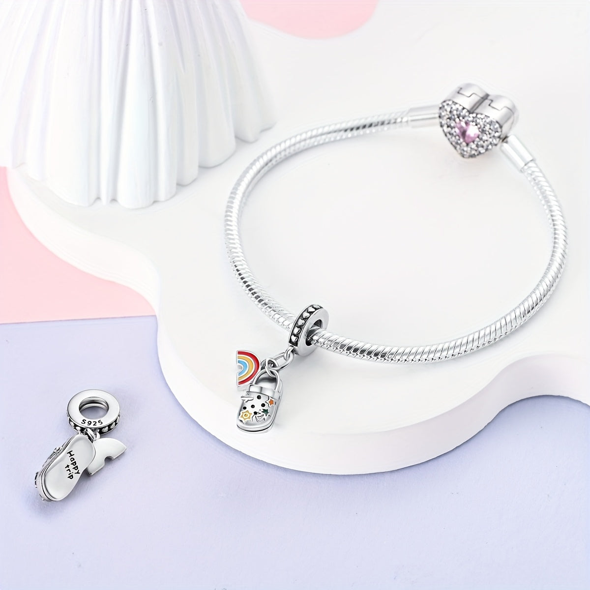 Add a pop of color and joy to your outfit with this sterling silver bracelet and necklace set featuring vibrant rainbow charm beads. Perfect gift for Valentine's Day!