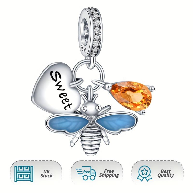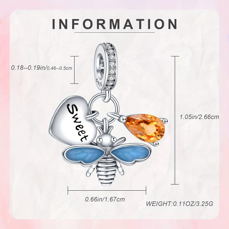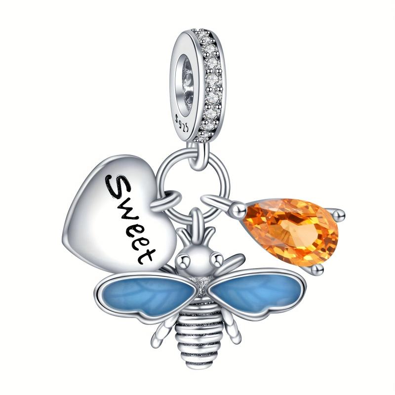Add this charming bee and orange triple dangle charm to your bracelet or necklace for a sweet touch. Made from 925 sterling silver, this pendant is perfect for DIY holiday gifts.