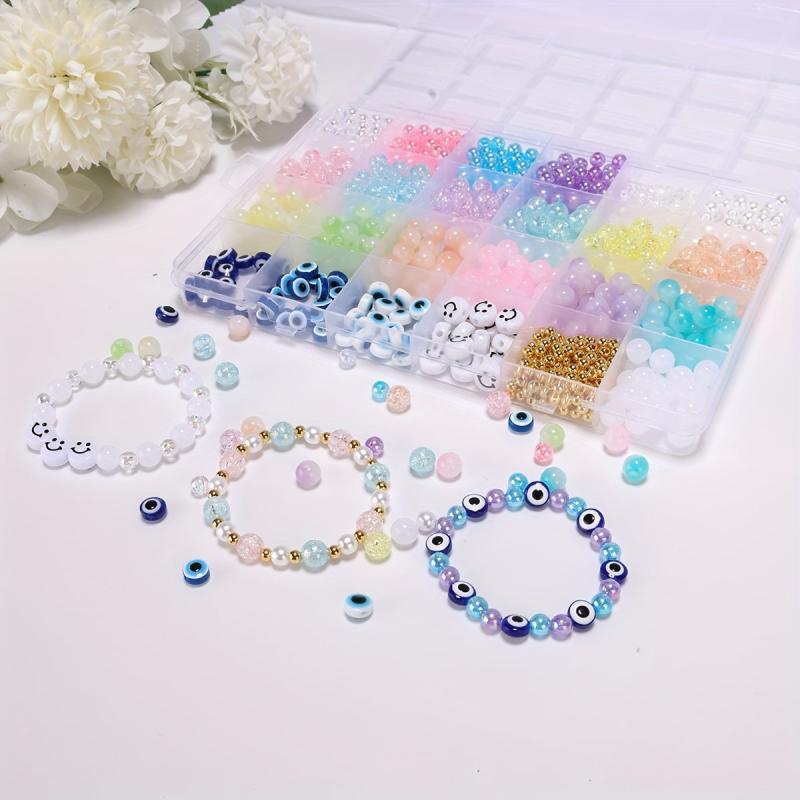 Create beautiful jewelry with this kit that includes transparent glass beads for a lovely bracelet and necklace. Perfect for DIY projects and crafting.