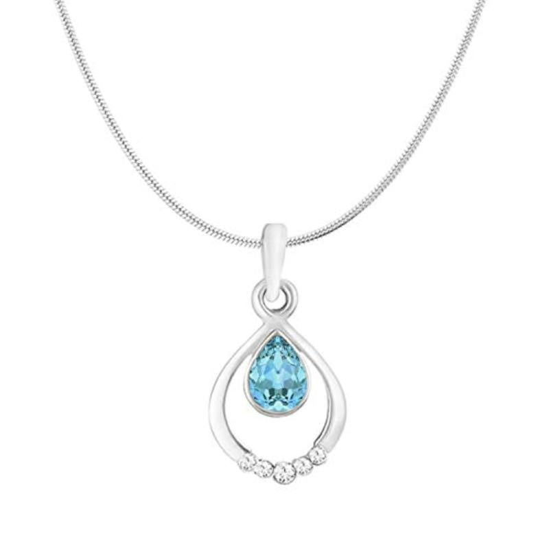 Shine bright with this stunning aqua drop pendant featuring sparkling crystals. Rhodium plated for a lasting shine.