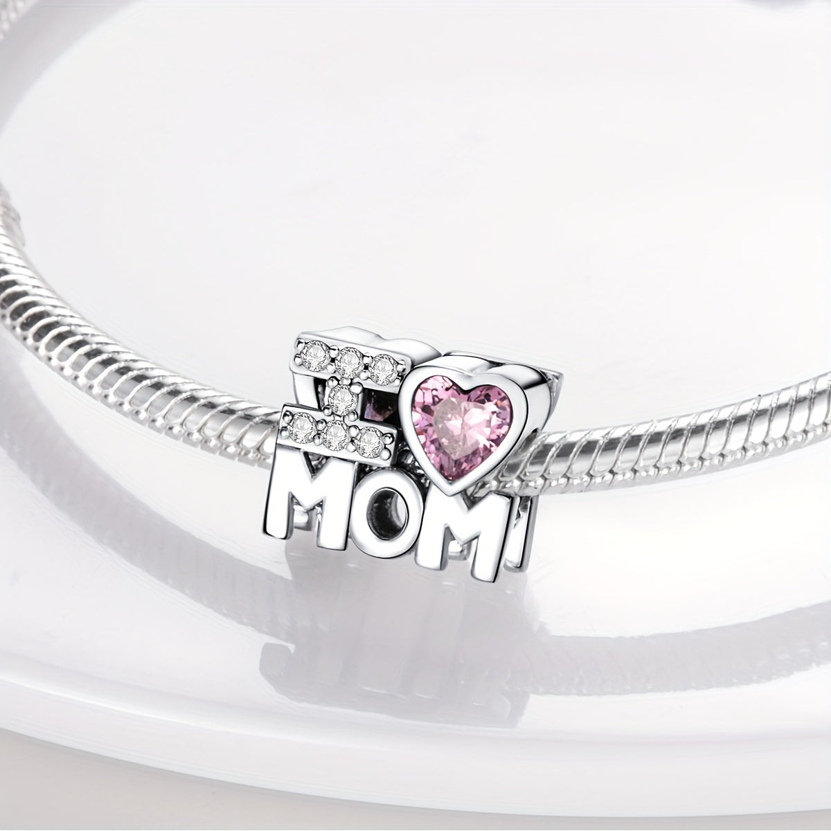 This elegant bracelet is made of 925 sterling silver with beads and features a heart-shaped zirconia charm, making it an ideal gift for mothers. It weighs 4 grams and is perfect for parties.